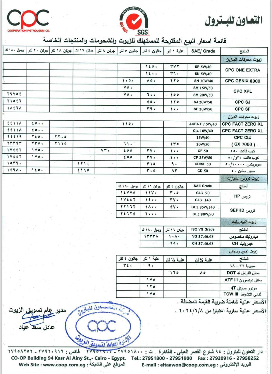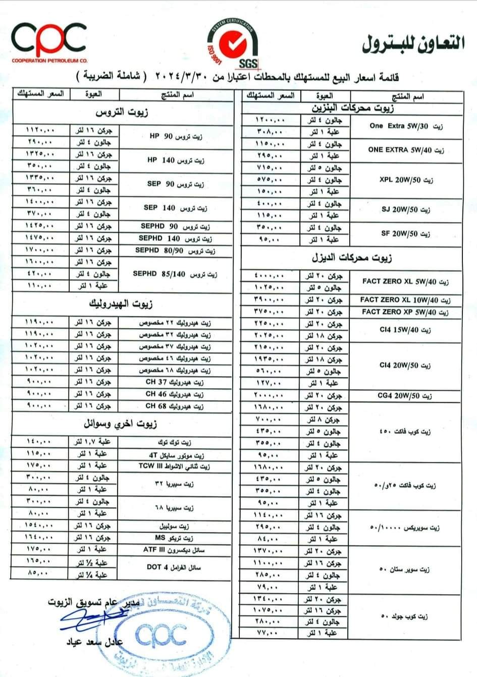 يبدأ تطبيقها اليوم، أسعار زيوت التعاون للبترول بعد زيادة يونيو