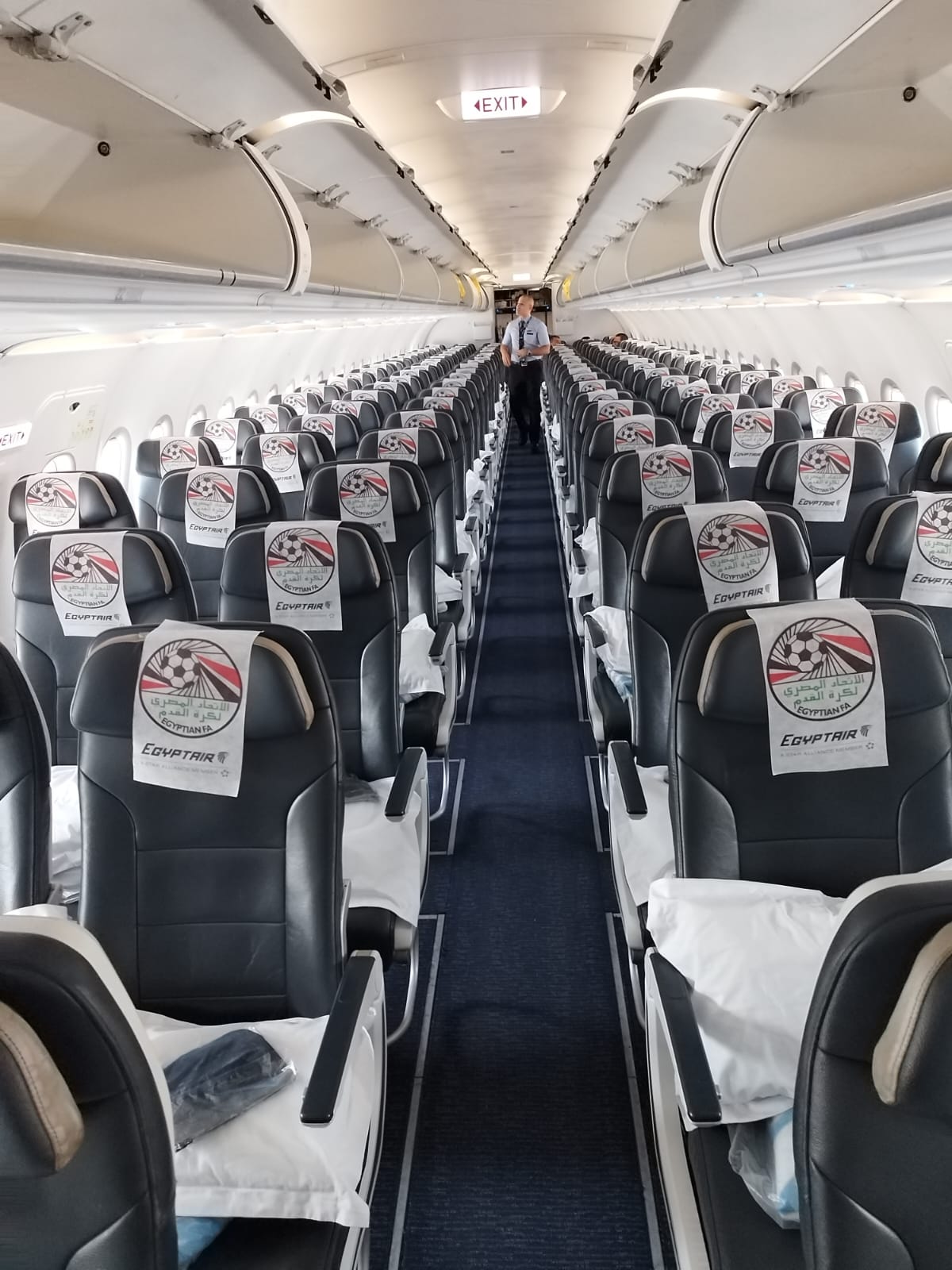 وقدم فريق من العلاقات العامة بمصر للطيران وشركة ميناء القاهرة الجوي كافة التسهيلات اللازمة لسفر منتخب مصر من صالة 4 في رحلة تستغرق نحو 8 ساعات بأحدث طائرات مصر للطيران من طراز إيرباص A320N.