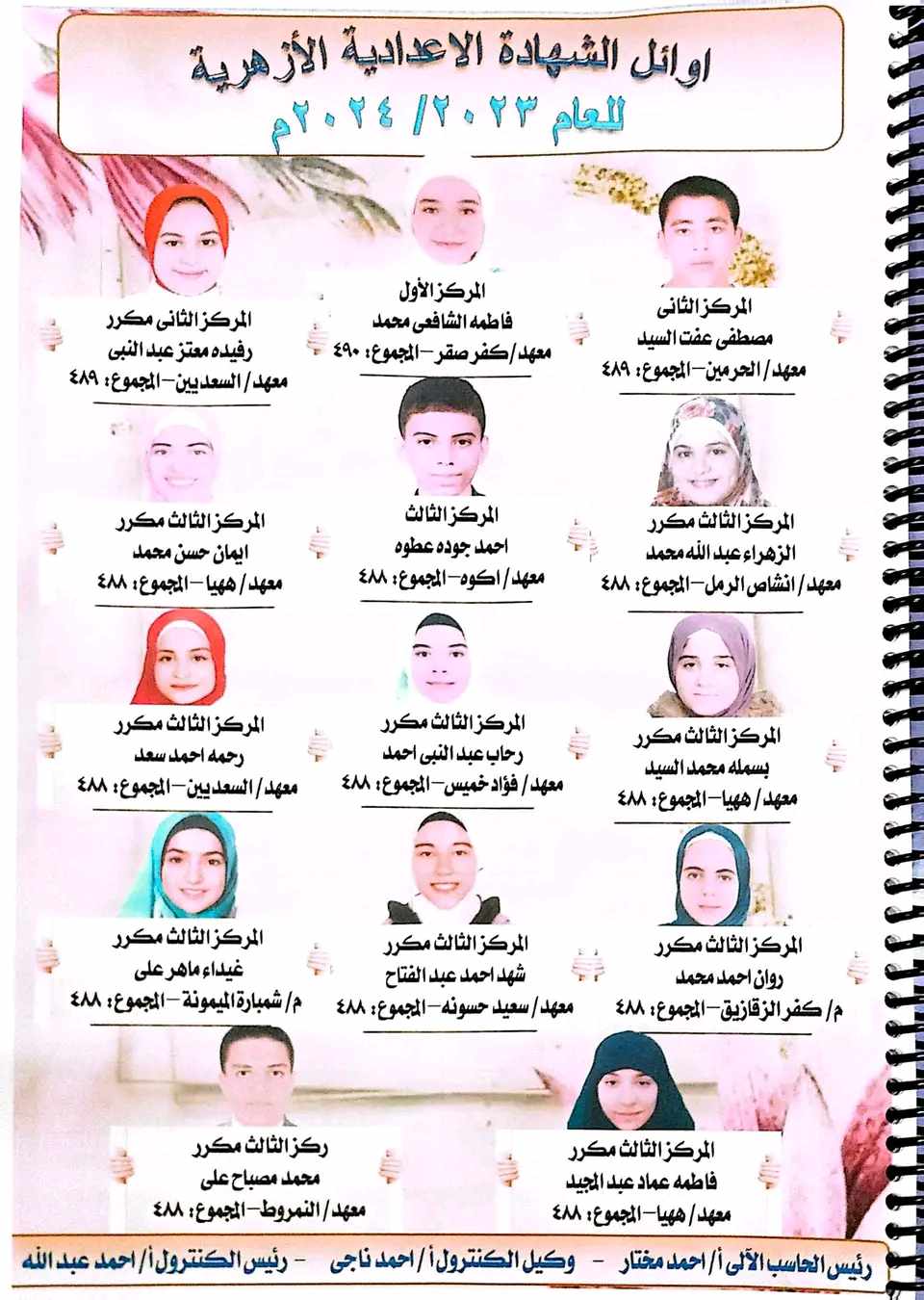 أوائل الشهادة الإعدادية الأزهريّة بمحافظة الشرقية