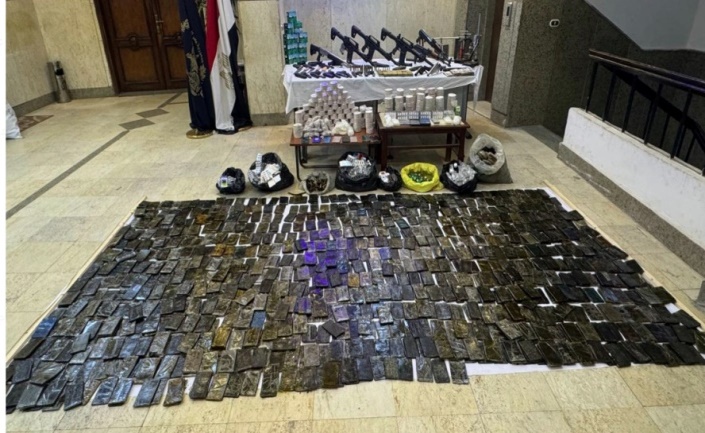 وعقب تقنين الإجراءات أمكن ضبطهم، وبحوزتهم (كمية من مخدر الحشيش وزنت 140 كيلو جرام – كمية من مخدر الهيروين وزنت 37 كيلو جرام – كمية من مخدر الآيس وزنت 3.500 كيلو جرام – 8 ميزان حساس – كمية من الأدوات والمواد الخام التى تستخدم فى خلط وتصنيع المواد المخدرة - 2 بندقية آلية – 4 بنادق خرطوش – 6 طبنجات – 2 فرد محلى – عدد من الطلقات مختلفة الأعيرة – 33 خزينة – 6 قطع سلاح أبيض).