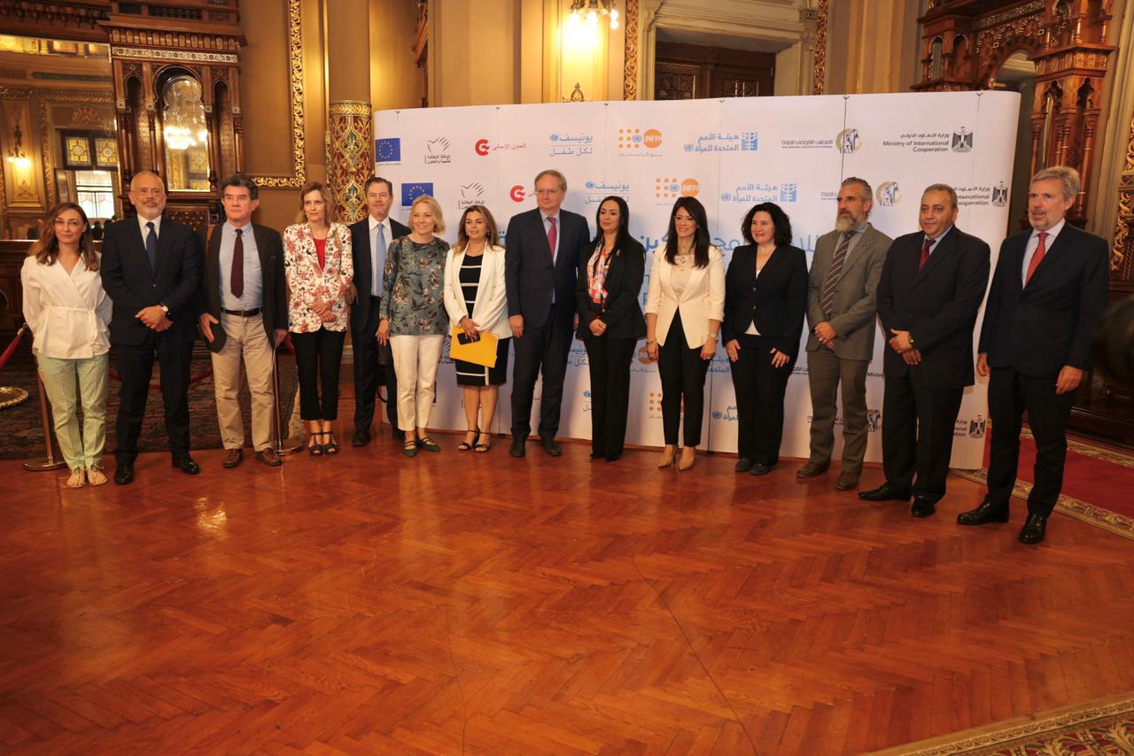 جاء ذلك بحضور الدكتورة رانيا المشاط وزيرة التعاون الدولي، والسفير عمر أبو عيش مساعد وزير الخارجية، والسفير ميشيل كواروني سفير إيطاليا بمصر، والسفير الفارو ايرانزو سفير أسبانيا في مصر، والسفير كريستيان برجر رئيس بعثة الاتحاد الأوروبي في مصر، وكريستين عرب الممثلة القطرية لهيئة الأمم المتحدة للمرأة، وجيرمين هوبكنز الممثل القطري لليونيسيف، وجيرمين حداد المسؤولة عن صندوق الأمم المتحدة للسكان، والدكتور مارتينو ملي رئيس التعاون الايطالي في مصر، وايفا سواريز ليوناردو رئيس التعاون الأسباني في مصر، وبعض موظفي المجلس القومي للمرأة.