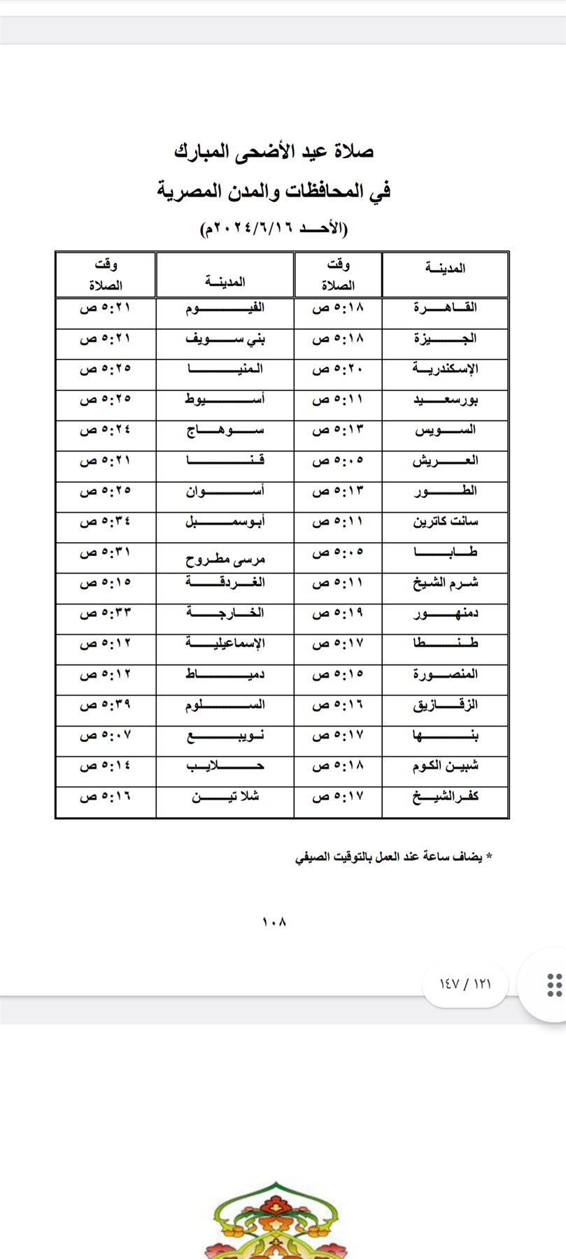 مواعيد صلاة عيد الأضحى المبارك بالمحافظات 2024