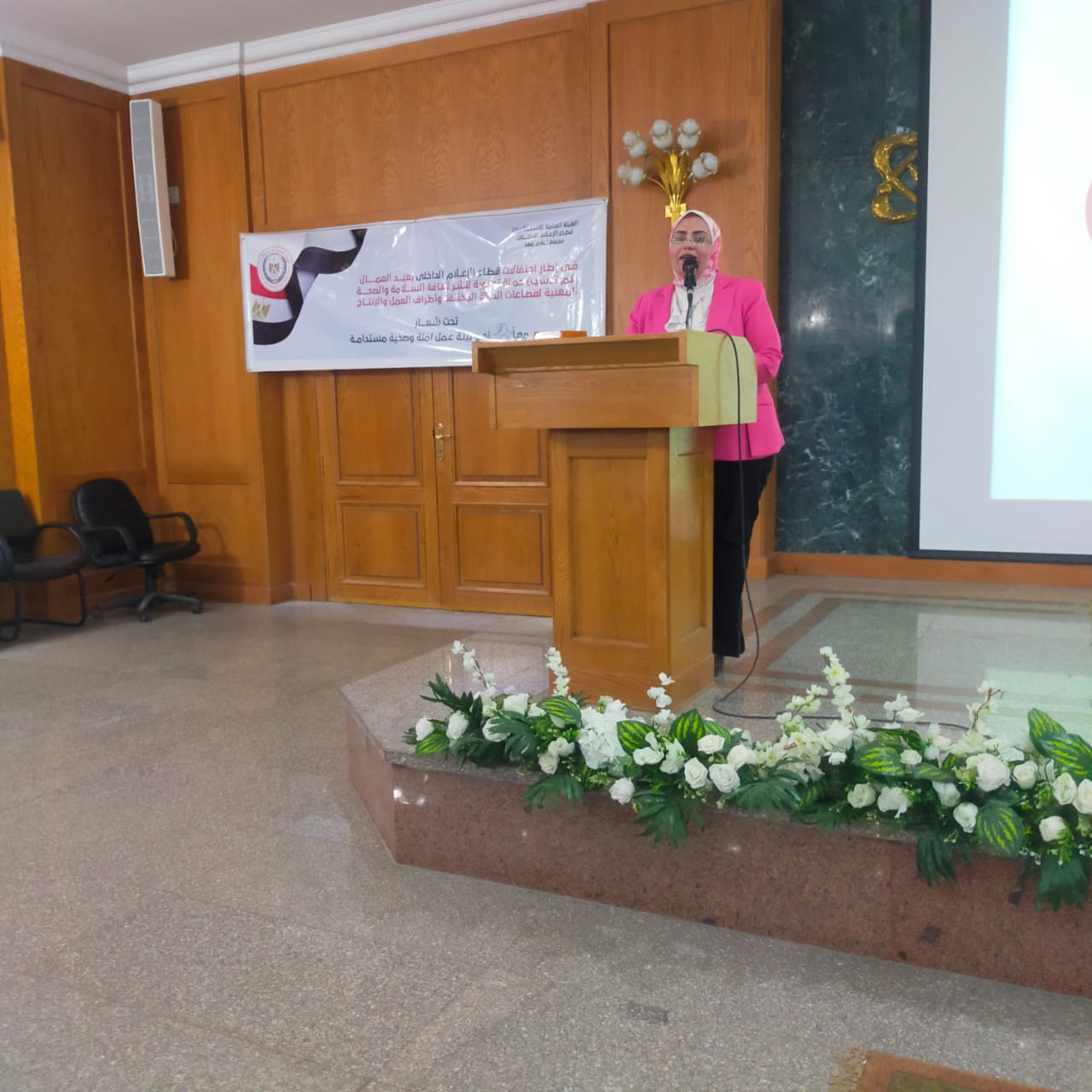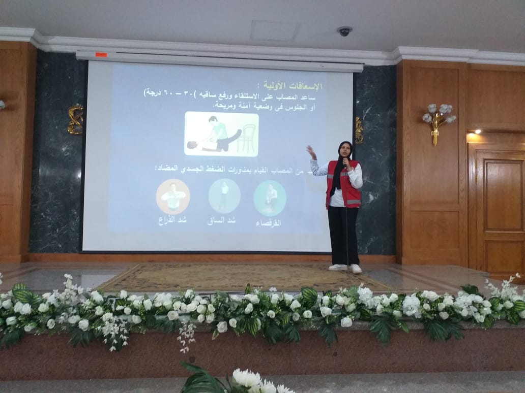 عرضت مدربات الهلال الأحمر المصري بعض المعلومات الخاصة بالتعريف بما هو مقصود بالسلامة والصحة المهنية ومجموعة الإجراءات والسلوكيات المتبعة والتي تهدف إلى منع وقوع إصابة أو الحوادث في مكان العمل، حيث يعتبر كل من العاملين وأرباب العمل مسؤولين عن تطبيق هذه الإجراءات على حدٍّ سواء.