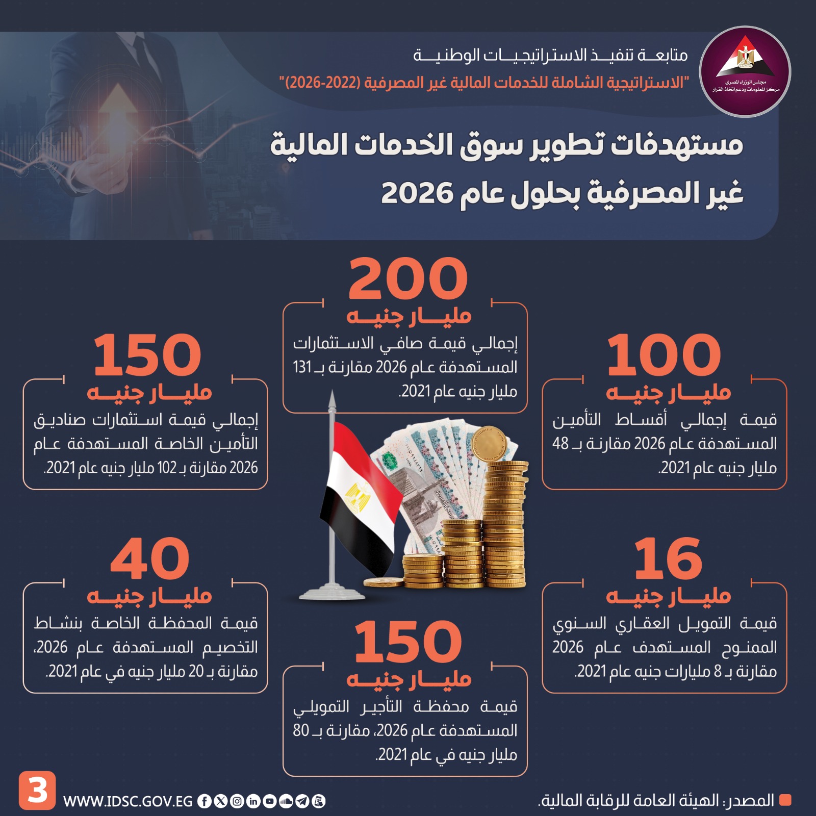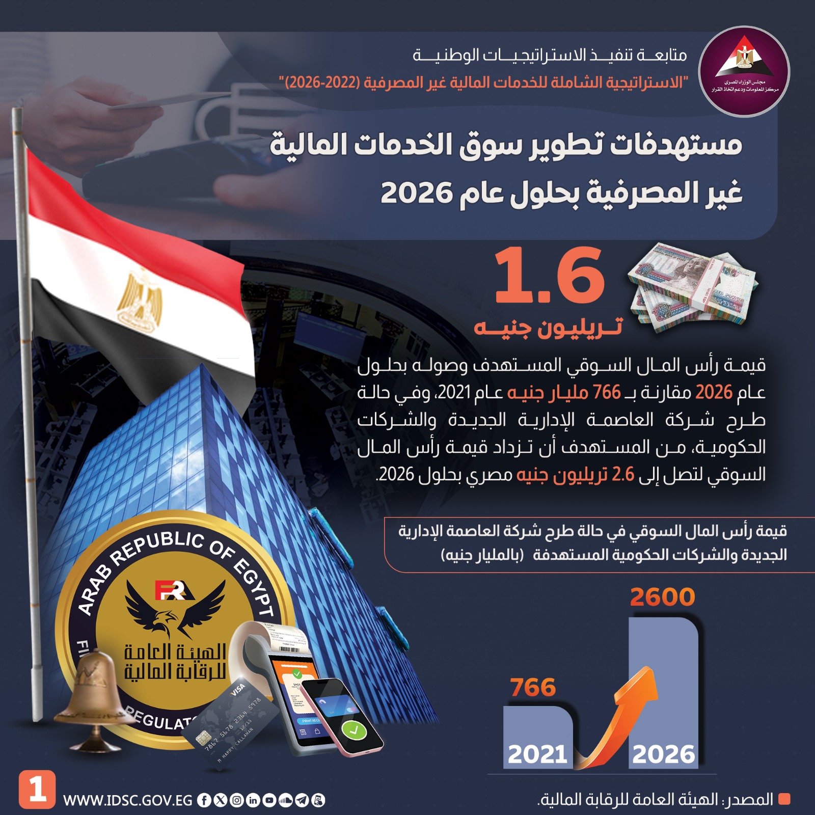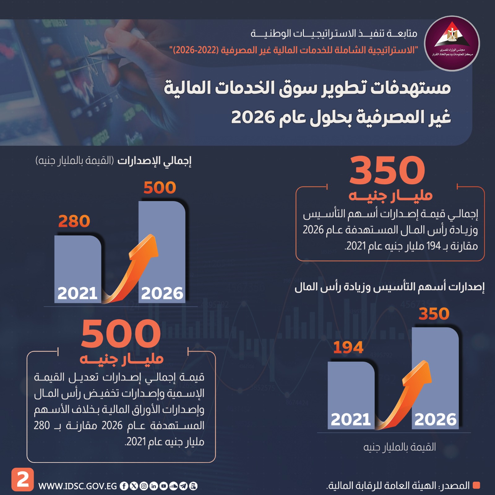 1.6 تريليون جنيه، مستهدفات تطوير سوق الخدمات المالية غير المصرفية بحلول 2026 (إنفوجراف)