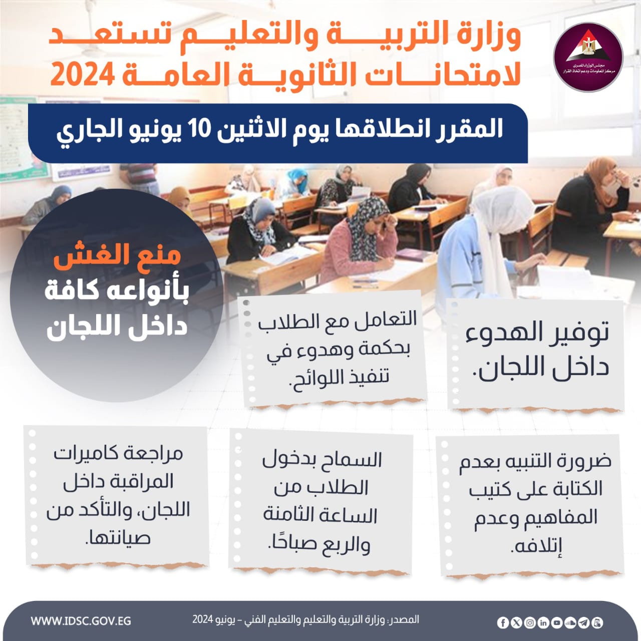 حيث اتخذت وزارة التربية والتعليم والتعليم الفني العديد من الإجراءات المكثفة من أجل ضمان انتظام سير منظومة امتحانات الثانوية العامة، وحصول كل طالب على حقه، بما يحقق مبدأ العدالة وتكافؤ الفرص والشفافية.