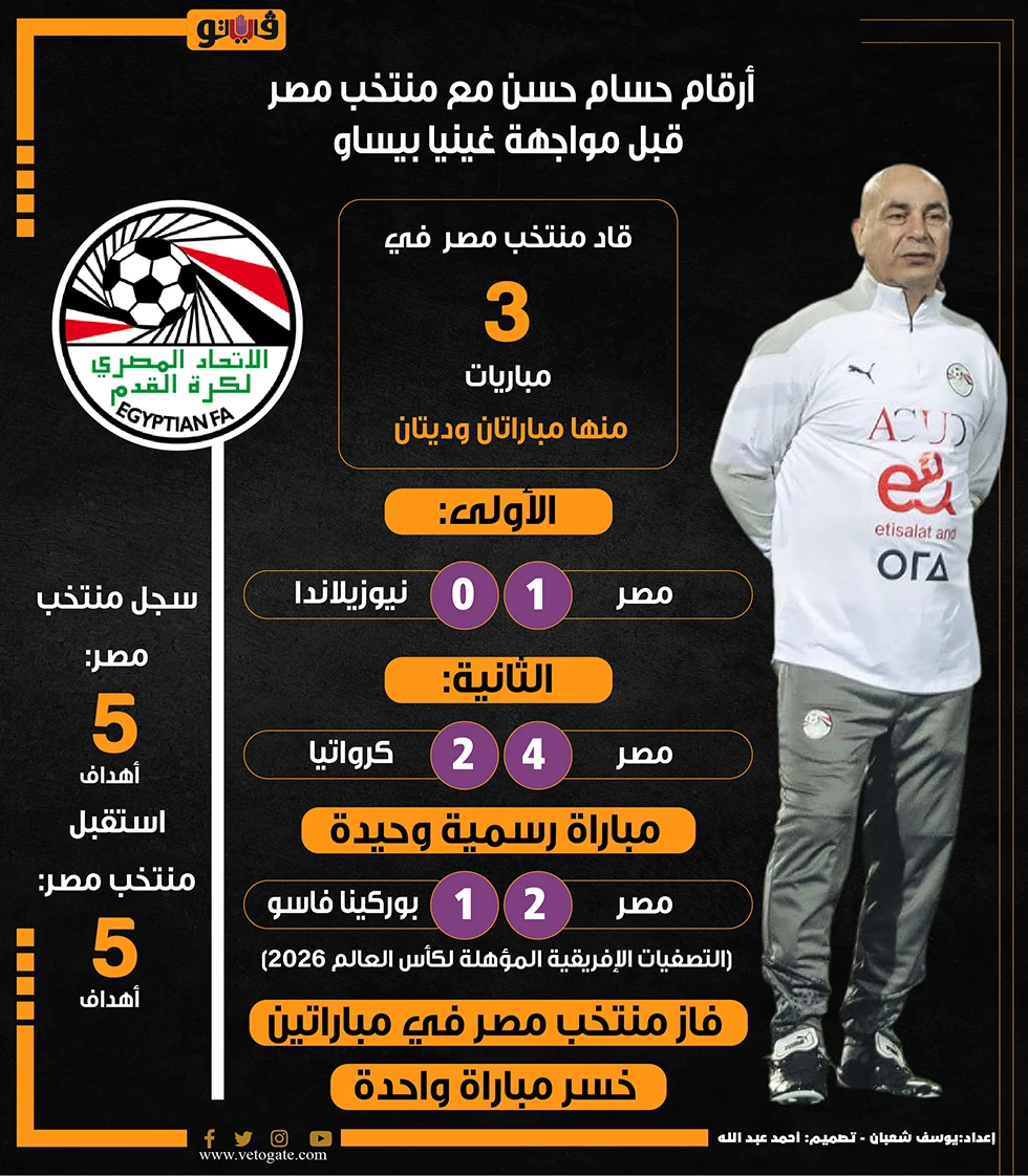 ويبحث حسام حسن المدير الفني لمنتخب مصر عن الانتصار الثاني علي التوالي في مهمته الرسمية مع الفراعنة أمام غينيا بيساو في مشواره مع الفراعنة نحو التأهل لكأس العالم 2026.