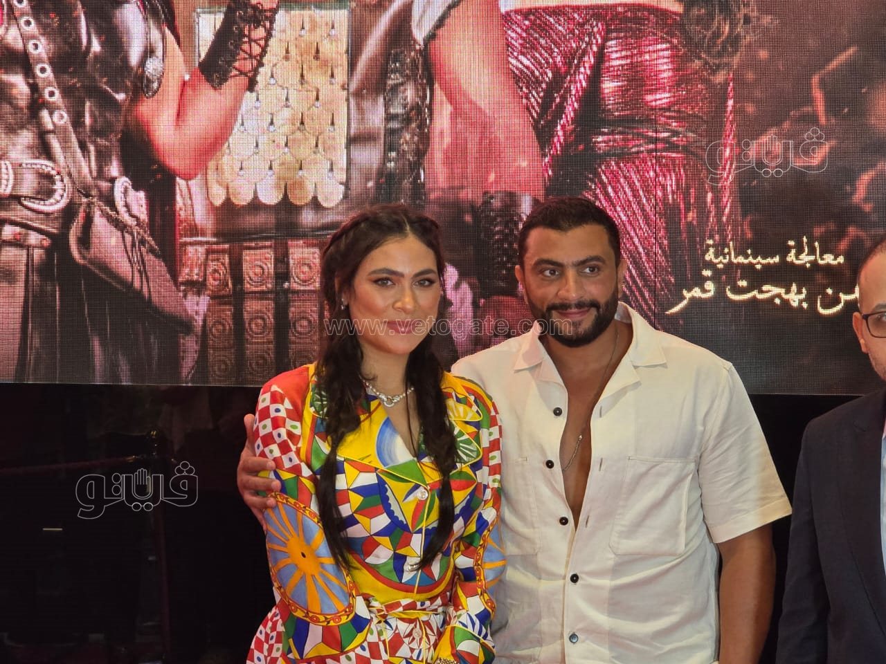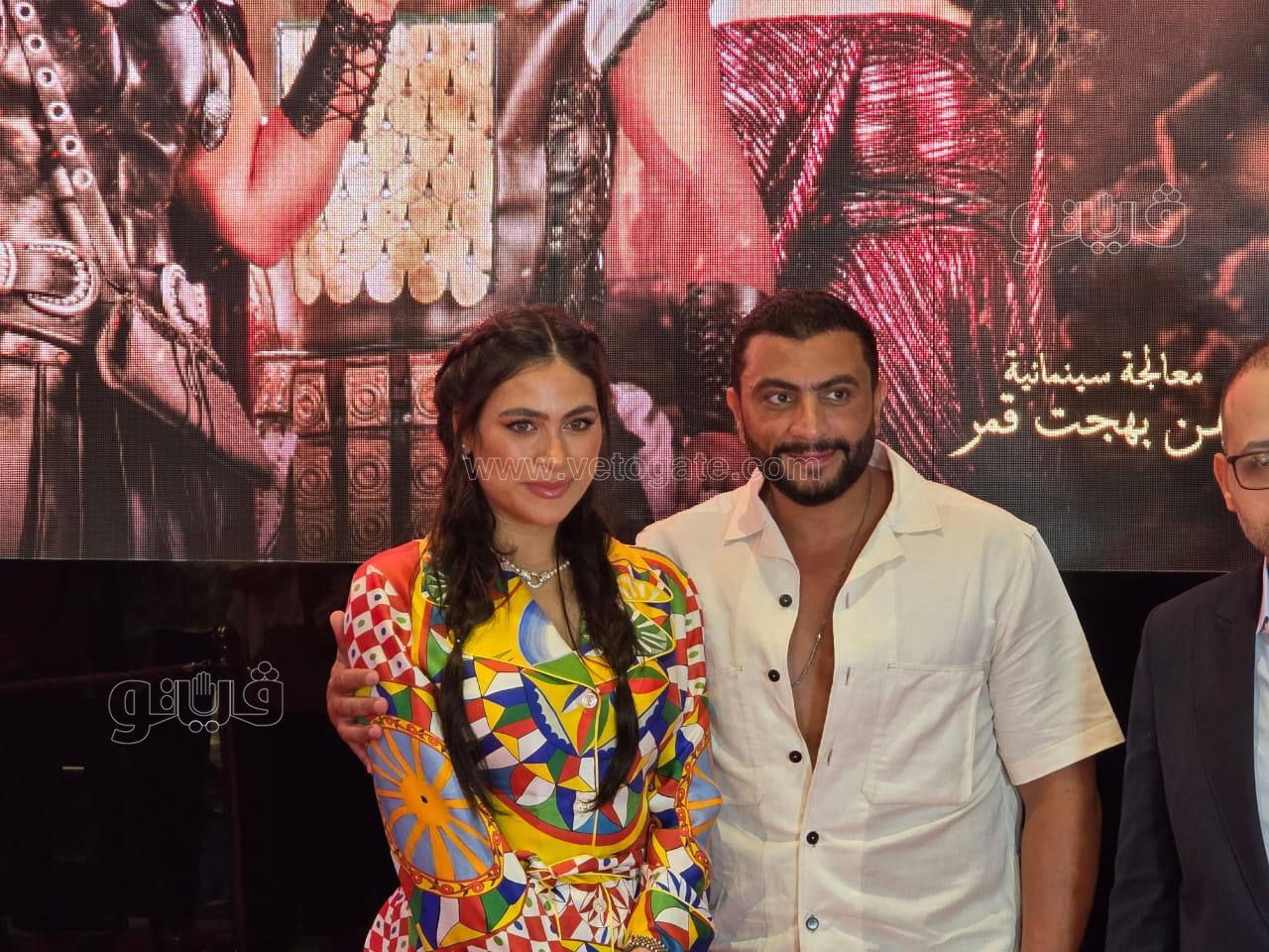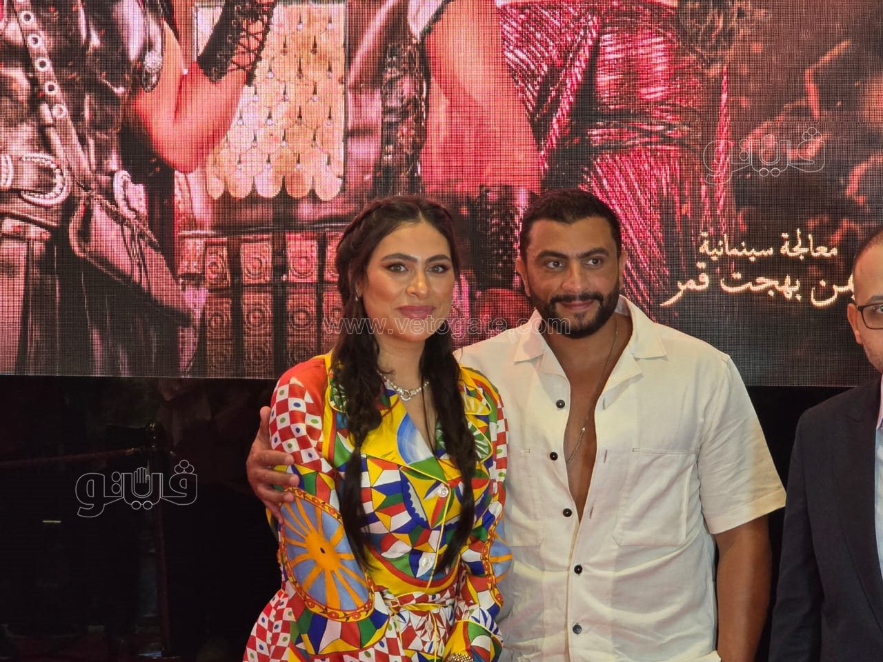 هاجر أحمد تخطف الأضواء في أحدث ظهور لها رفقة زوجها بالعرض الخاص لـ أهل الكهف