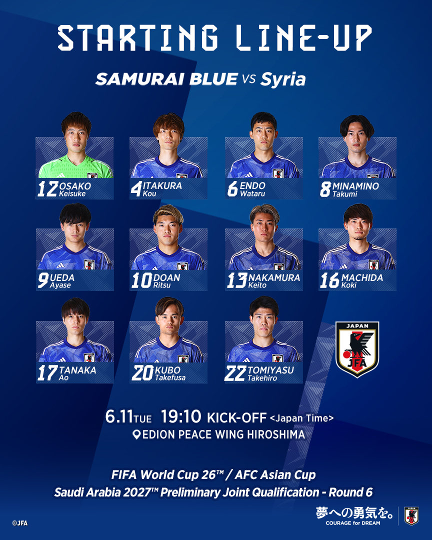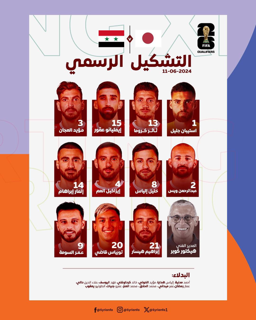 تصفيات كأس العالم، التشكيل الرسمي لمباراة سوريا واليابان