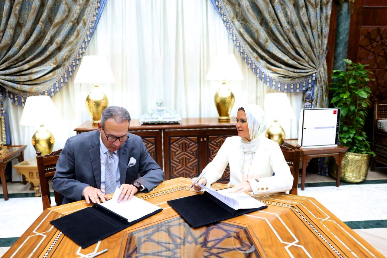وقع بروتوكول التعاون الدكتورة سحر نصر – المدير التنفيذي لبيت الزكاة والصدقات- مستشار فضيلة الإمام الأكبر شيخ الأزهر، مع محمد الإتربى - رئيس مجلس إدارة بنك مصر.