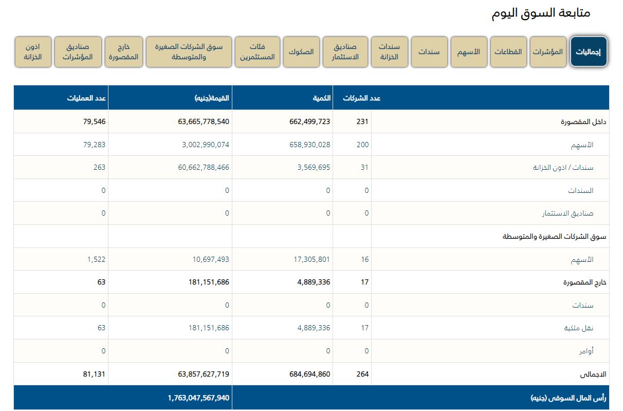 - ارتفع مؤشر الشركات الصغيرة والمتوسطة "إيجي إكس 70 متساوي الأوزان" بنسبة 1.11% ليغلق عند مستوى 5739 نقطة.