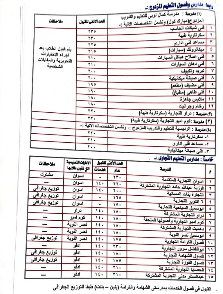 فيما أوضح محمد الرشيدى أنه يتم قبول الطلاب بالصف الأول الثانوى بجميع مدارس التعليم الفنى بمختلف النوعيات طبقًا لترتيب المتقدمين حسب المجموع الأعلى ووفقًا للكثافة المقررة، لافتًا إلى أنه بالنسبة لتحويلات الطلاب من مدارس اللغات أو التعليم الخاص الحاصلين على مجموع القبول بجميع مدارس الثانوى العام يتم حسب كثافة المدارس.