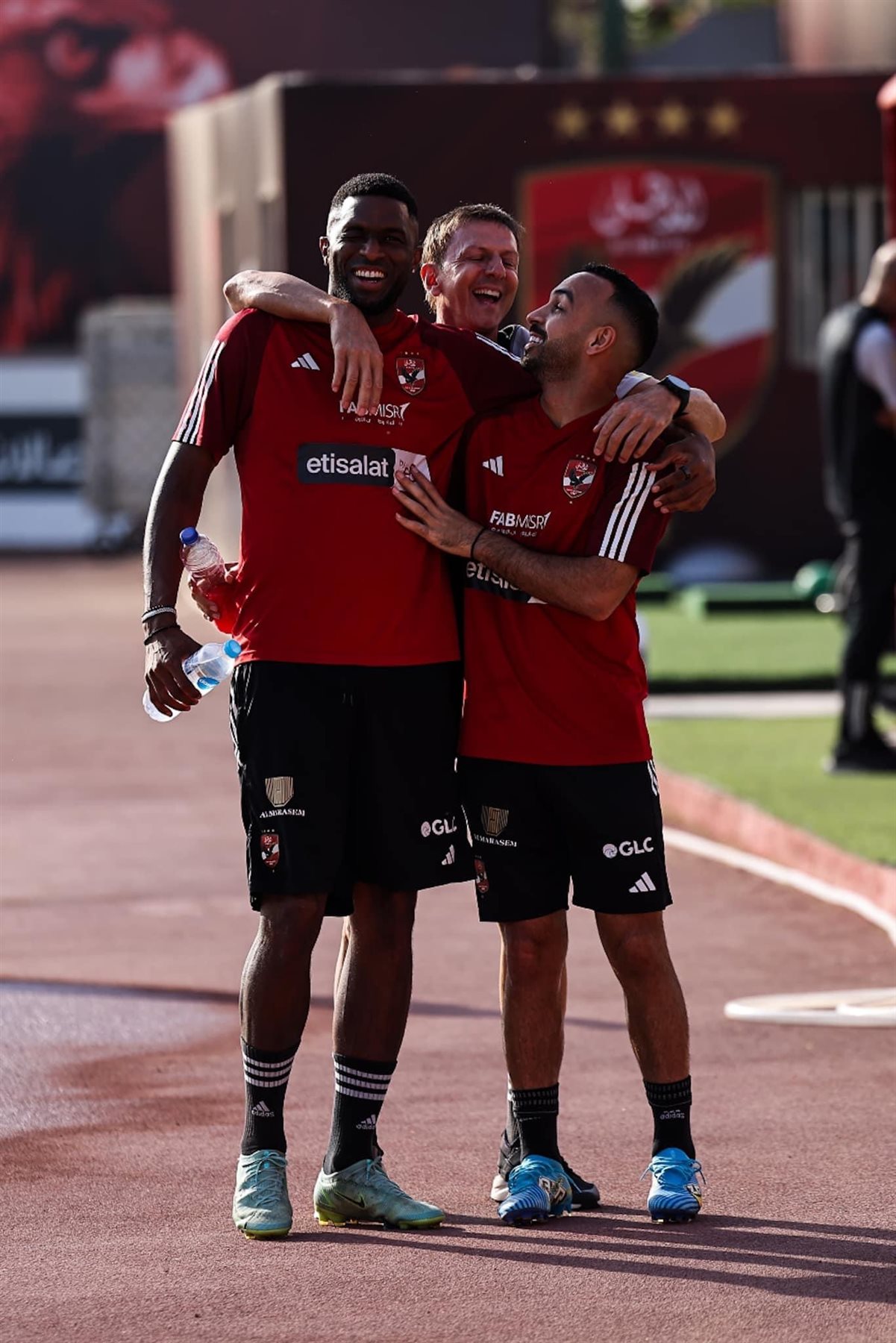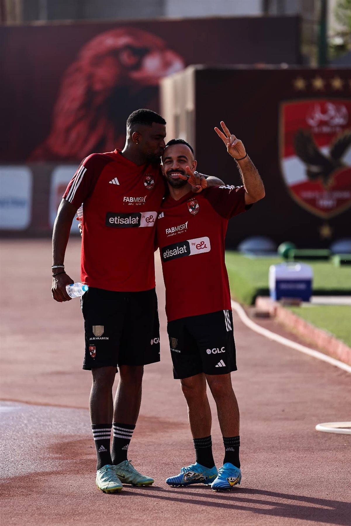 قبلة موديست على رأس أفشة الأبرز، 20 صورة ترصد مران الأهلي استعدادا لمواجهة فاركو