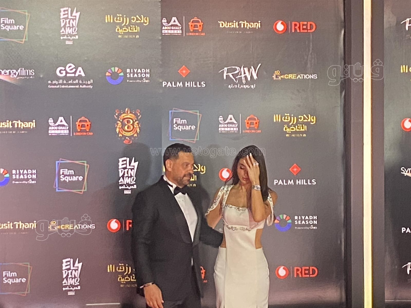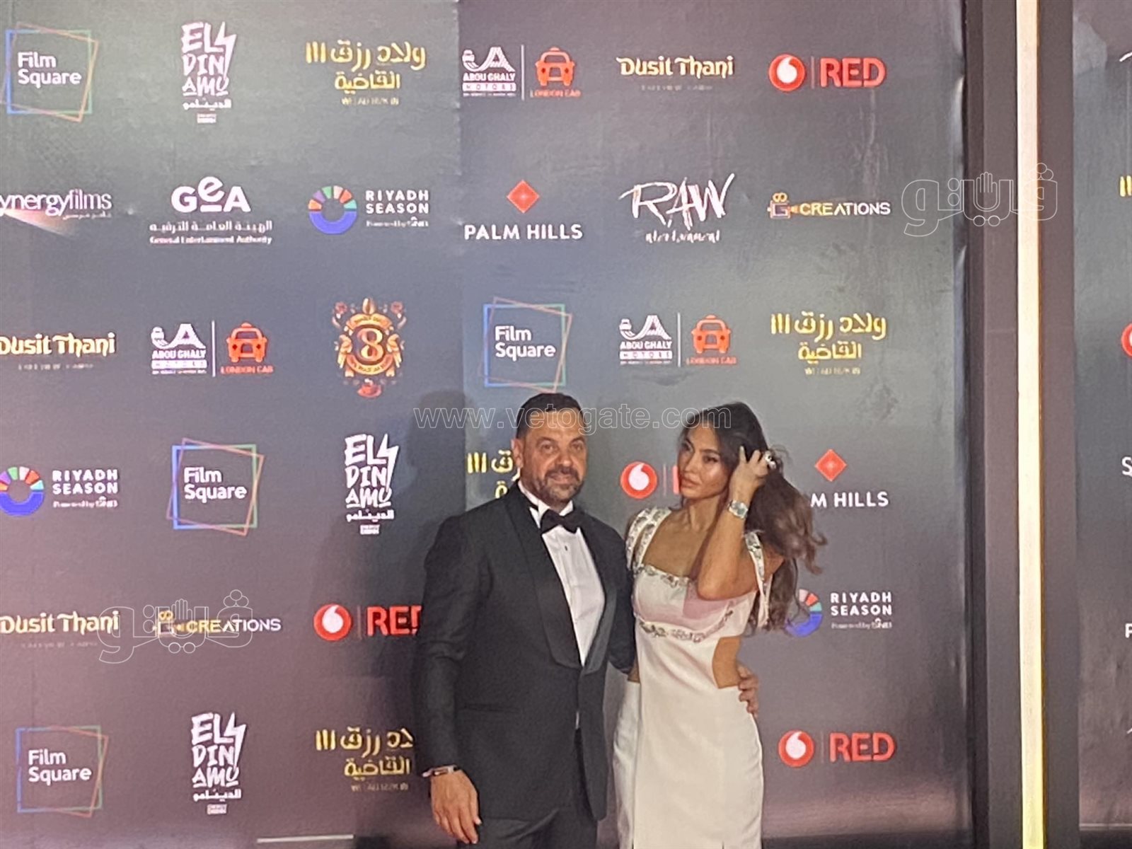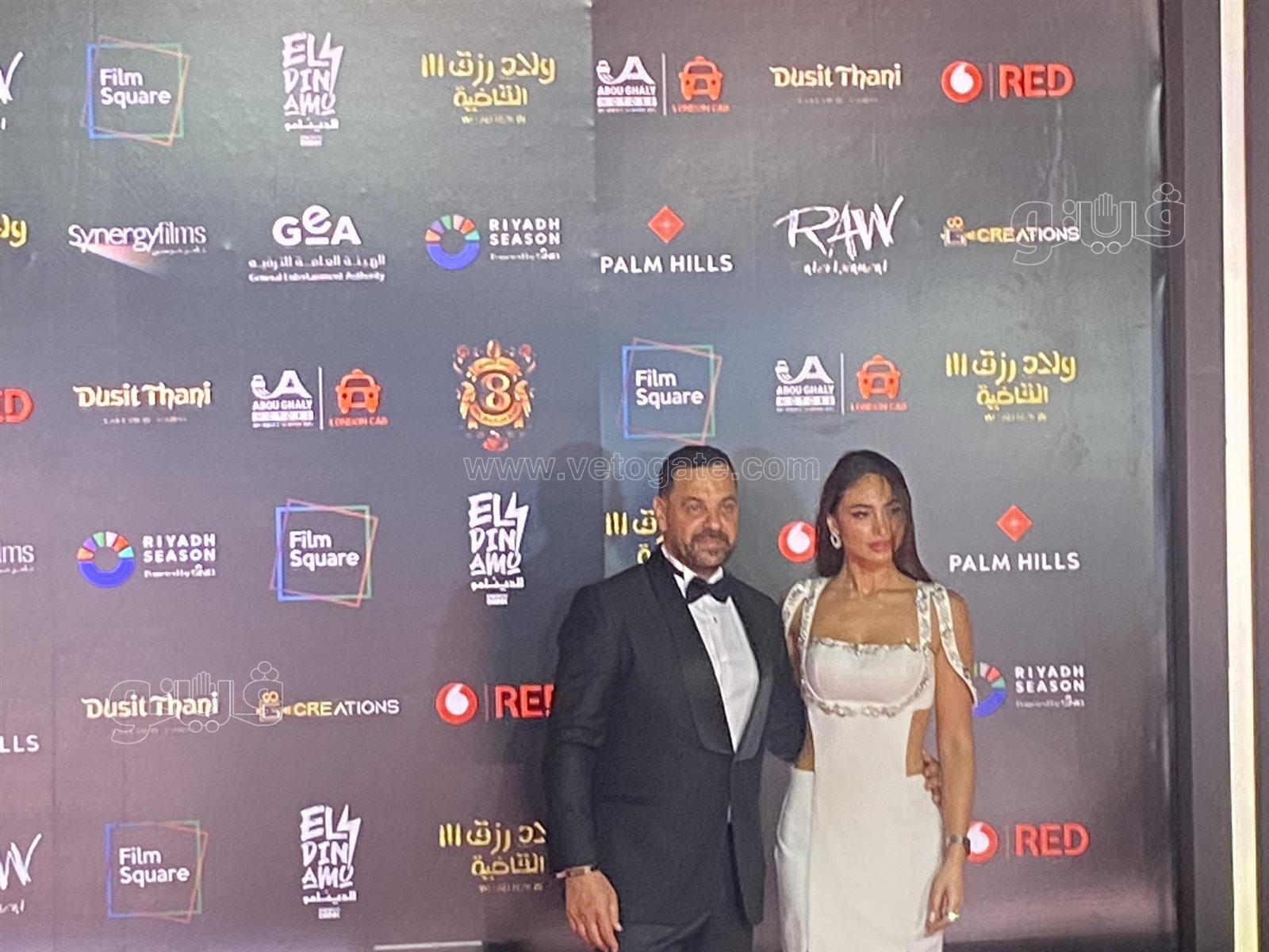 طارق العريان ونيكول سعفان يخطفان الأنظار على السجادة الحمراء لفيلم ولاد رزق 3 (صور)