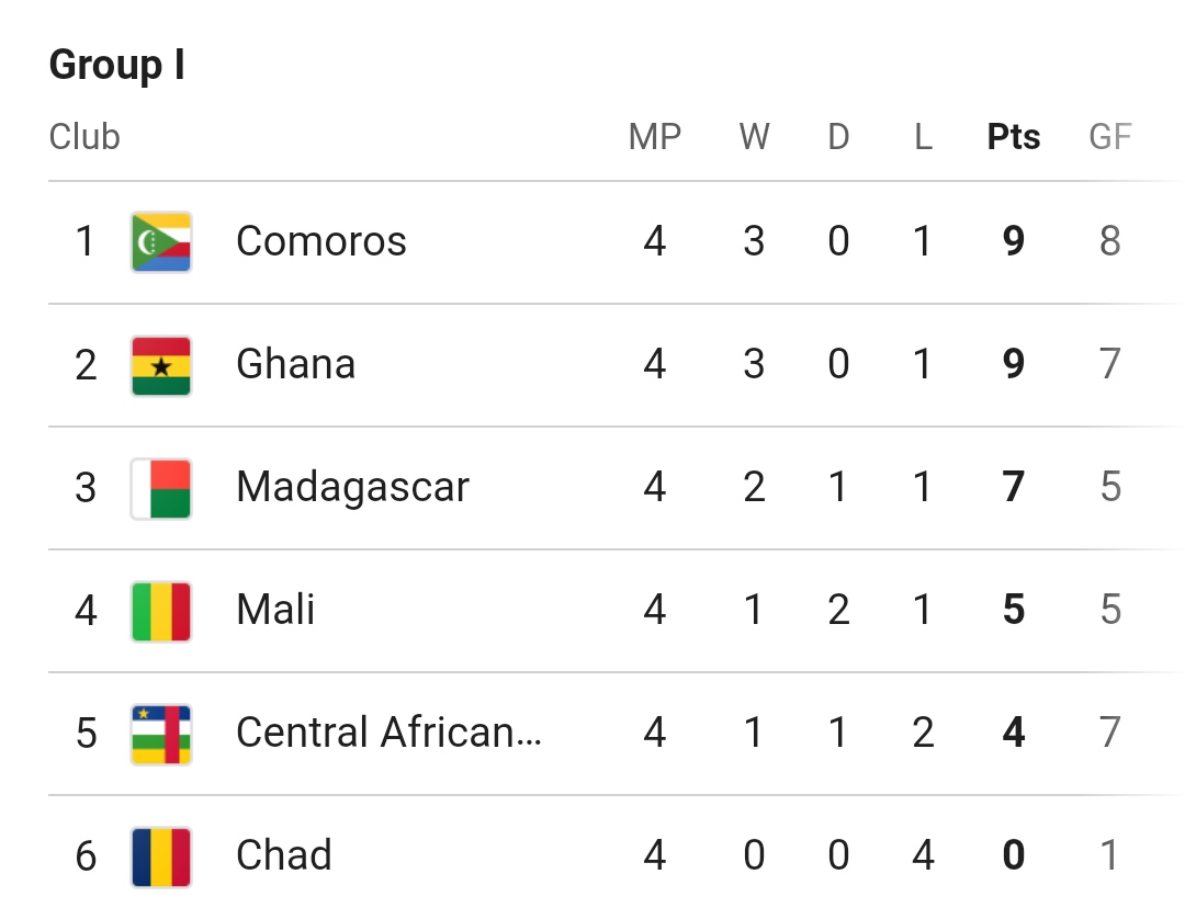 المجموعة التاسعة جزر القمر برصيد 9 نقاط.