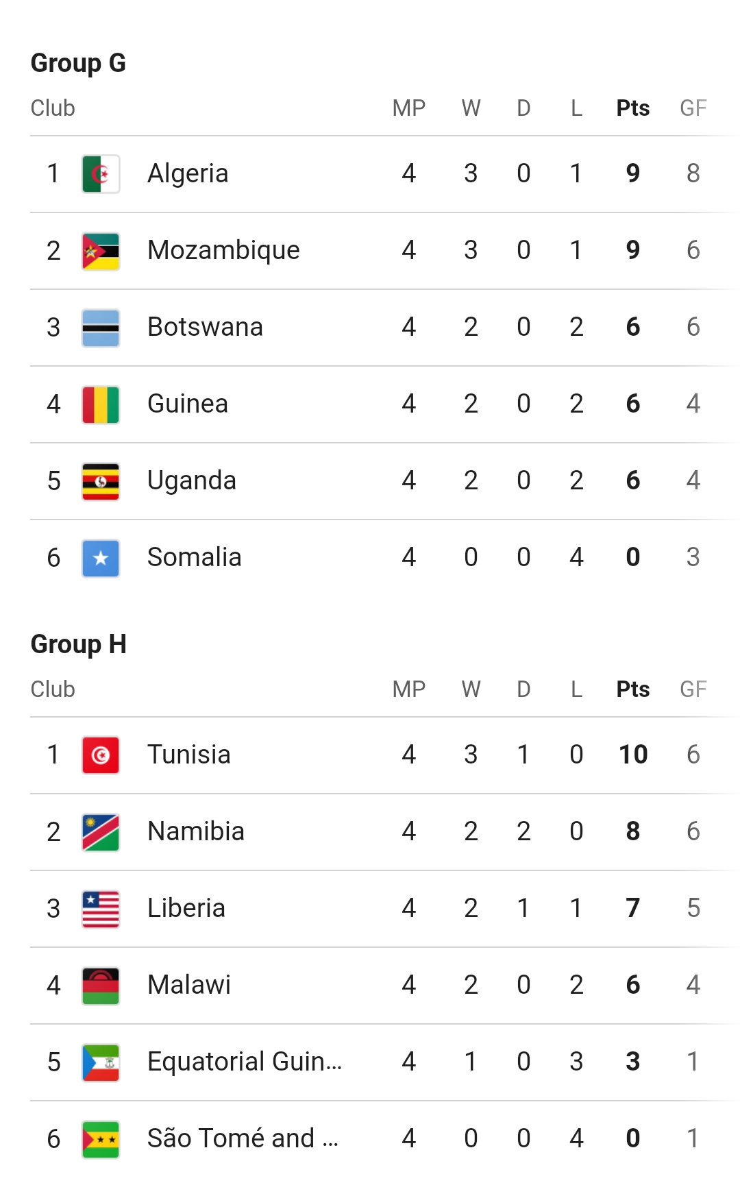 المجموعة السابعة يتصدرها منتخب الجزائر برصيد 9 نقاط.