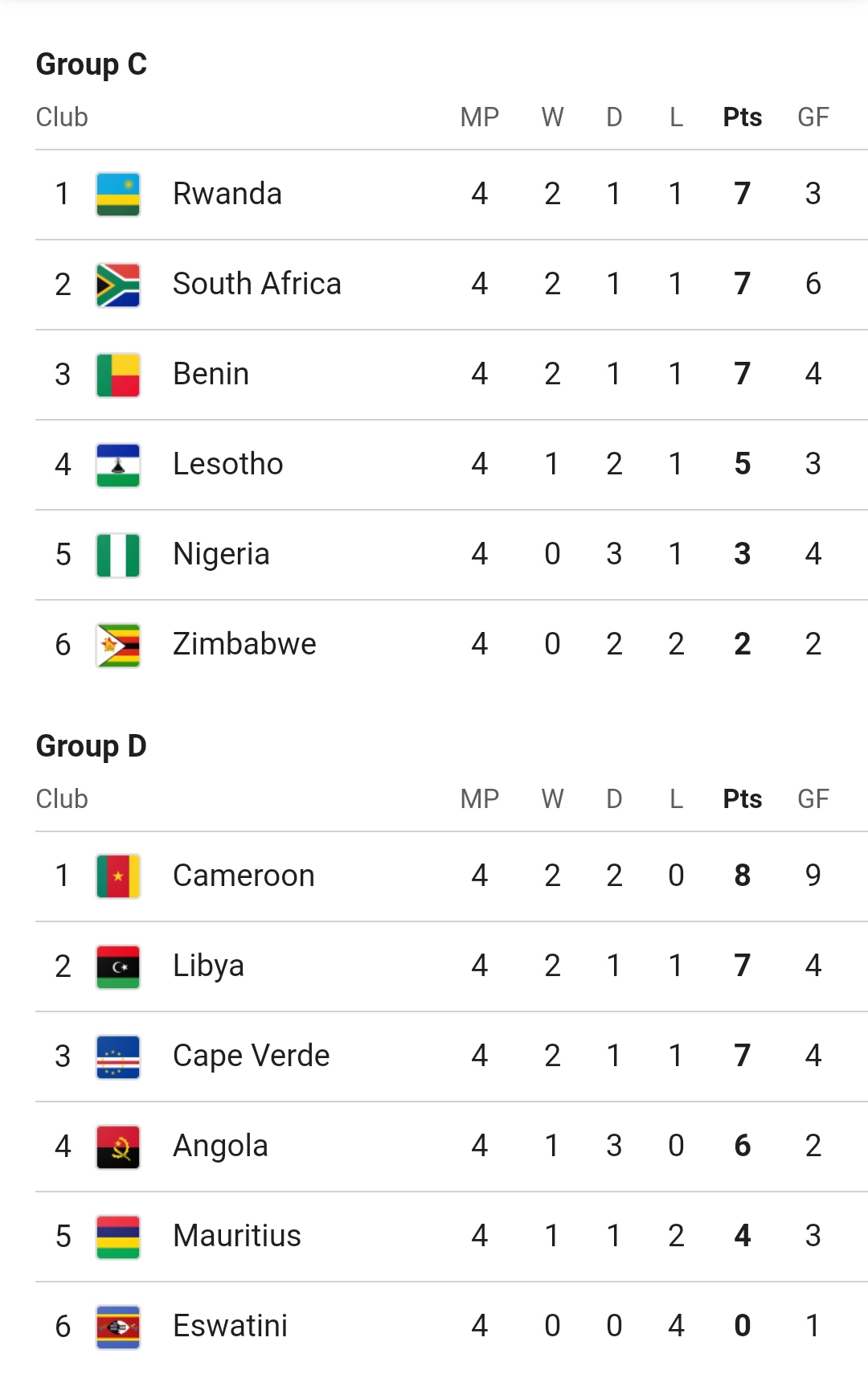ثم المجموعة الثالثة يتصدر منتخبي رواندا والسنغال برصيد 7 نقاط.