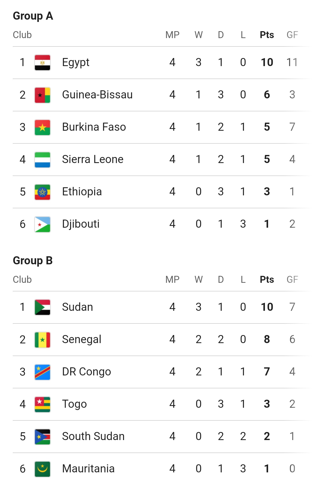 السودان برصيد 10 نقاط في المجموعة الثانية.