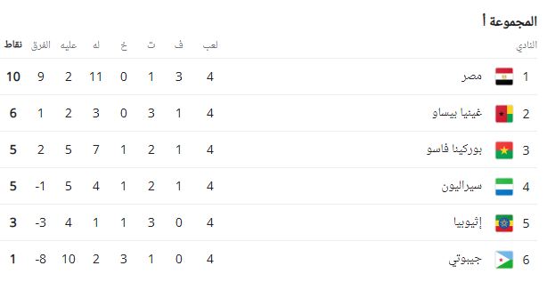 ترتيب مجموعة مصر في تصفيات كأس العالم بعد الجولة الرابعة