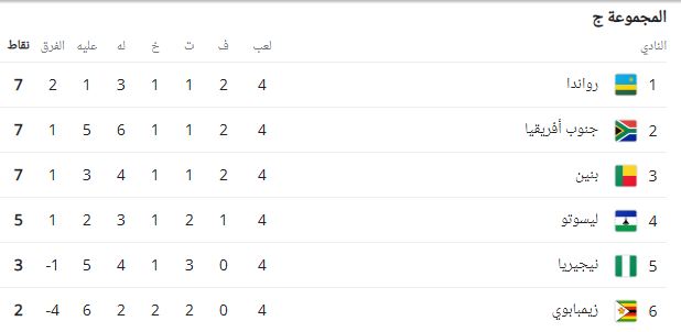 ترتيب مجموعة نيجيريا في تصفيات كأس العالم بعد الجولة الرابعة