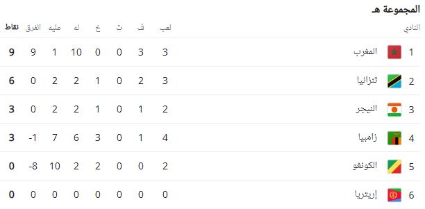 ترتيب مجموعة المغرب في تصفيات كأس العالم بعد الجولة الرابعة
