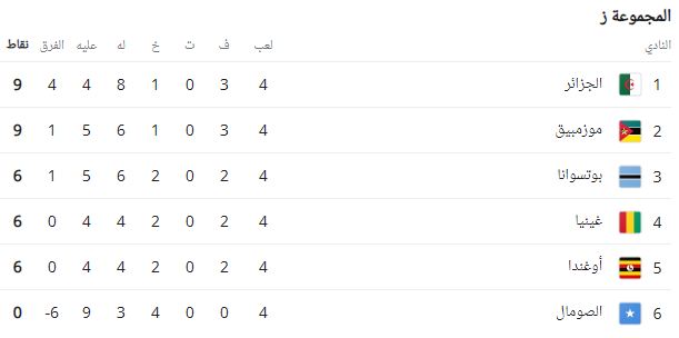 ترتيب مجموعة الجزائر في تصفيات كأس العالم بعد الجولة الرابعة