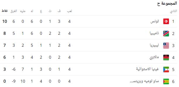 ترتيب مجموعة تونس في تصفيات كأس العالم بعد الجولة الرابعة