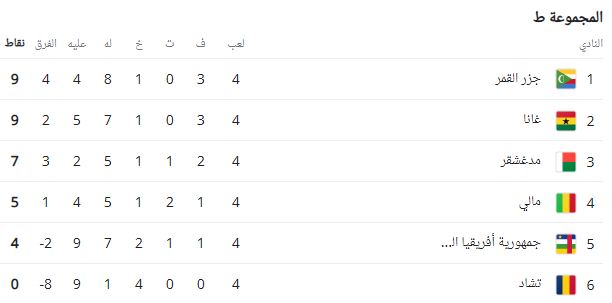 1- منتخب جزر القمر 9 نقاط