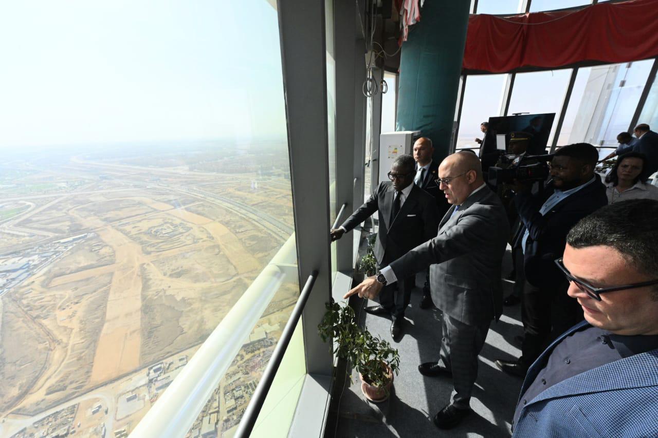 وتجول نائب رئيس جمهورية غينيا الاستوائية، ومرافقوه بمنطقة الأعمال المركزية بالعاصمة الإدارية الجديدة، وصعدوا إلى عدد من الأبراج متعددة الاستخدامات، كما صعدوا إلى نقطة المشاهدة فى البرج الأيقونى، حيث قدم وزير الإسكان لهم، شرحًا عن منطقة الأعمال المركزية، قائلا: تضم المنطقة 20 برجًا باستخدامات متنوعة، ومنها البرج الأيقوني، وهو أعلى برج فى إفريقيا، بارتفاع نحو 400 متر، ويتم تنفيذها بالتعاون بين وزارة الإسكان، ممثلة فى هيئة المجتمعات العمرانية الجديدة، وشركة (cscec) الصينية، وهى إحدى كبريات شركات المقاولات على مستوى العالم.