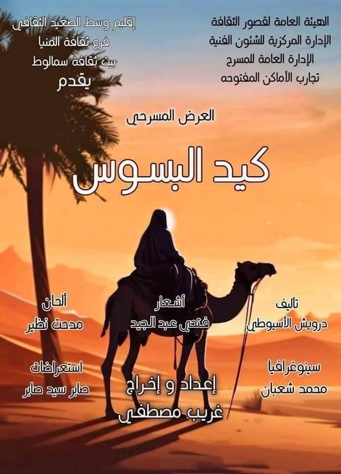 العرض من تأليف درويش الأسيوطي، وإخراج غريب مصطفى، ويناقش مشكلة انتشار الثأر بين القبائل، من خلال قصة "حرب البسوس" التي استمرت نحو 40 عاما بين قبيلتي "تغلب" و"بكر" أشهر القبائل القديمة بالجزيرة العربية وذلك في قالب غنائي استعراضي.