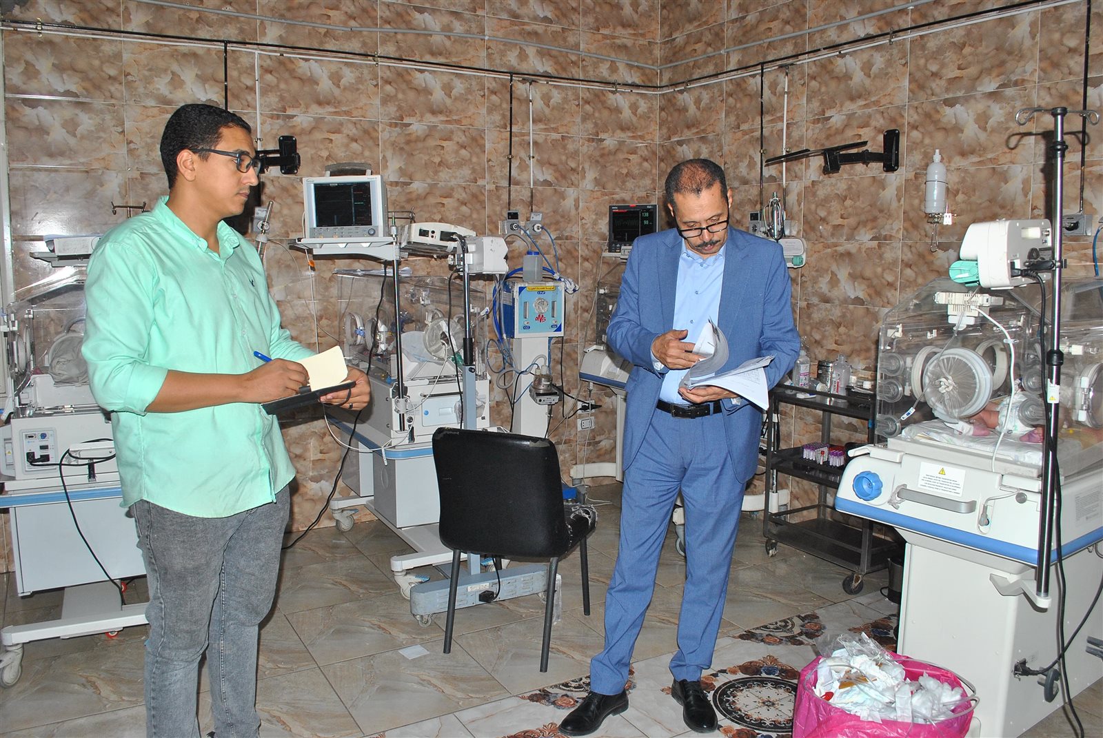 كما أكد على انضباط العمل بأقسام الاستقبال والطوارئ والحضانات والرعاية المركزة والأقسام الداخلية.