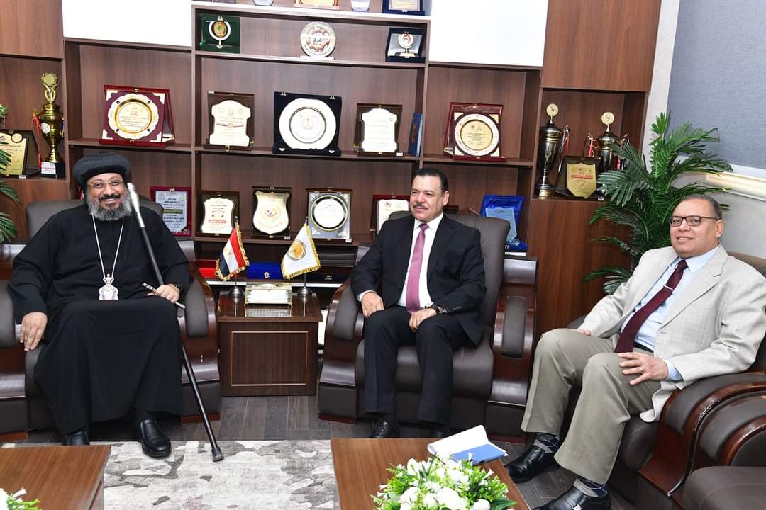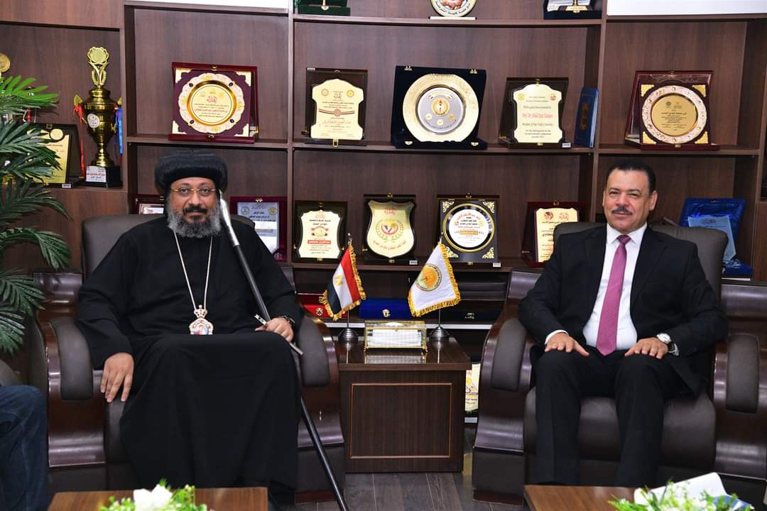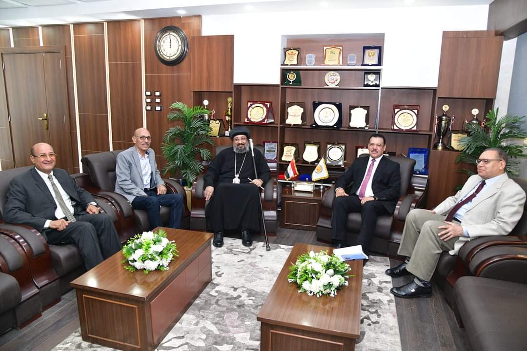 رئيس جامعة الوادي الجديد يستقبل وفدا من الكنيسة للتهنئة بعيد الأضحى