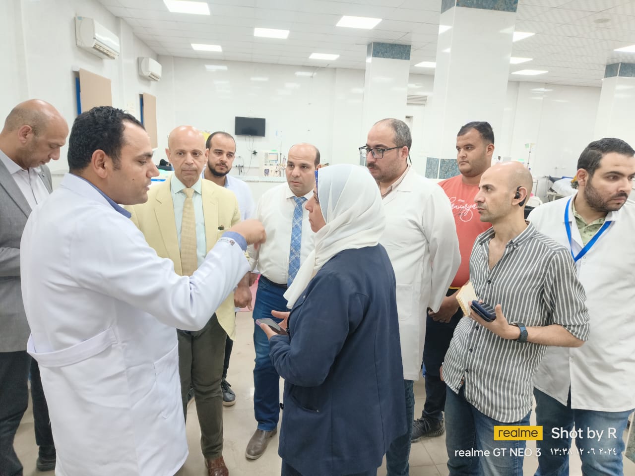 وعقب ذلك قام الدكتور هشام مسعود بالمرور على قسم الكلى الصناعي، والذي يضم عدد ٤٩ ماكينة غسيل كلوي، تخدم عدد ٢٠٩ مرضى، وحرص على الاستماع إلى المرضى أثناء إجراء جلسات الغسيل الكلوي، لمعرفة مدى رضاهم عن الخدمة المقدمة، وتوفير أي احتياجات طبية لهم،