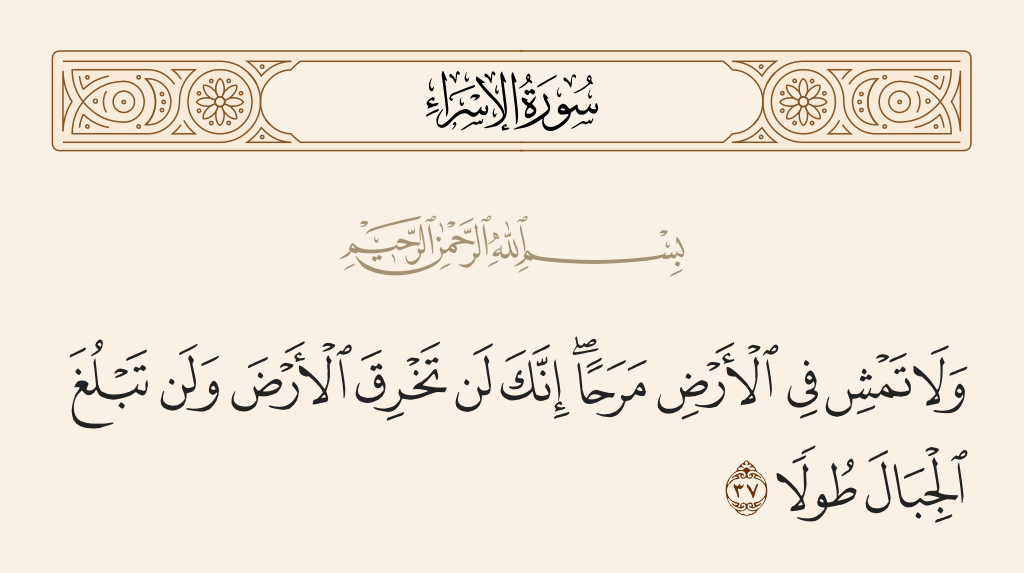 قال تعالى: «وَلَا تَمْشِ فِي الْأَرْضِ مَرَحًا إِنَّكَ لَنْ تَخْرِقَ الْأَرْضَ وَلَنْ تَبْلُغَ الْجِبَالَ طُولًا».