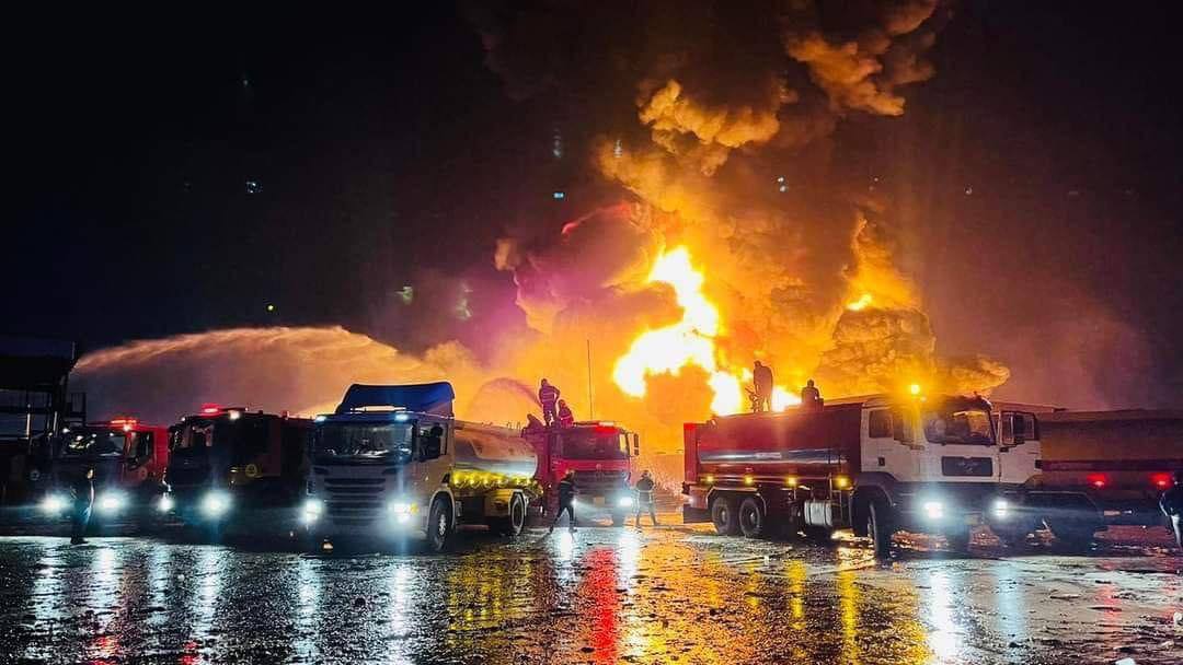 يذكر أن وسائل إعلام محلية أفادت بأن الحريق اندلع في مستودعات للنفط الخام والجير السائل.