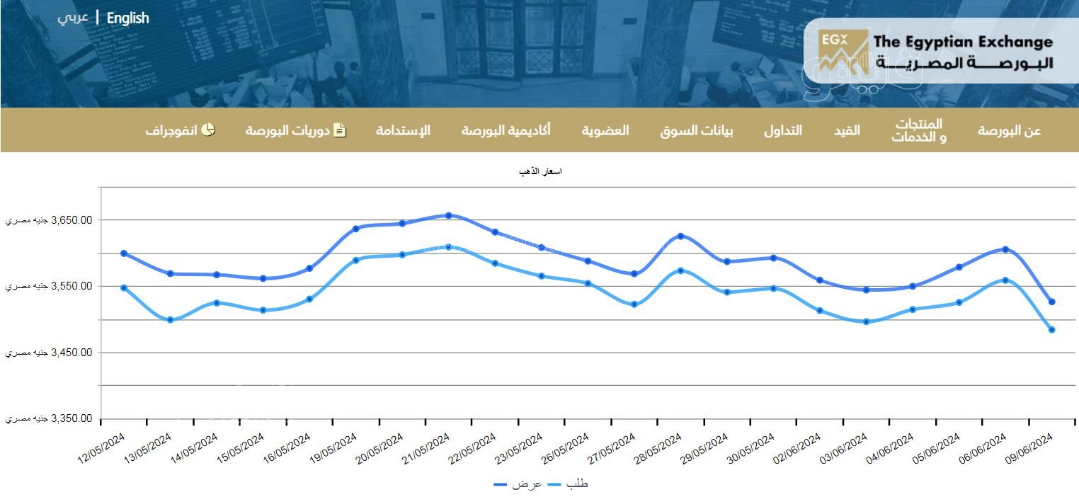 مؤشر الذهب، ارتفع مؤشر أسعار الذهب في البورصة المصرية اليوم الخميس 13 يونيو 2024، وسجل جرام الذهب، عيار 24 نحو 3535 جنيها للعرض، وسجل جرام الذهب عيار 24 نحو 3540 جنيها للطلب، بزيادة نحو 15 جنيها.