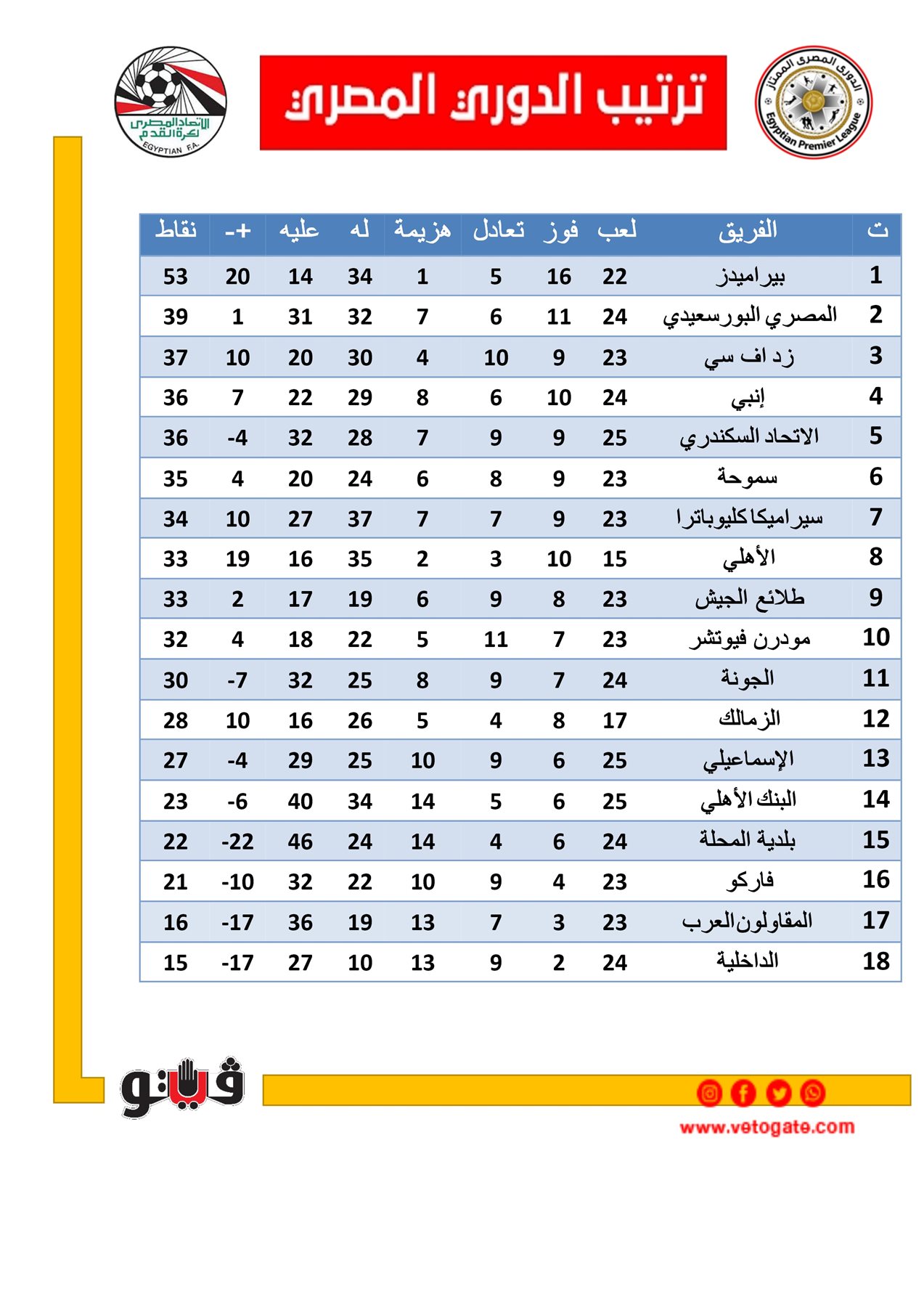 ويمتلك فريق بيراميدز 32 نقطة من 15 مباراة في الدور الأول لبطولة الدوري المصري، ويتبقى له مباراتا سموحة والأهلي فقط من الدور الأول.