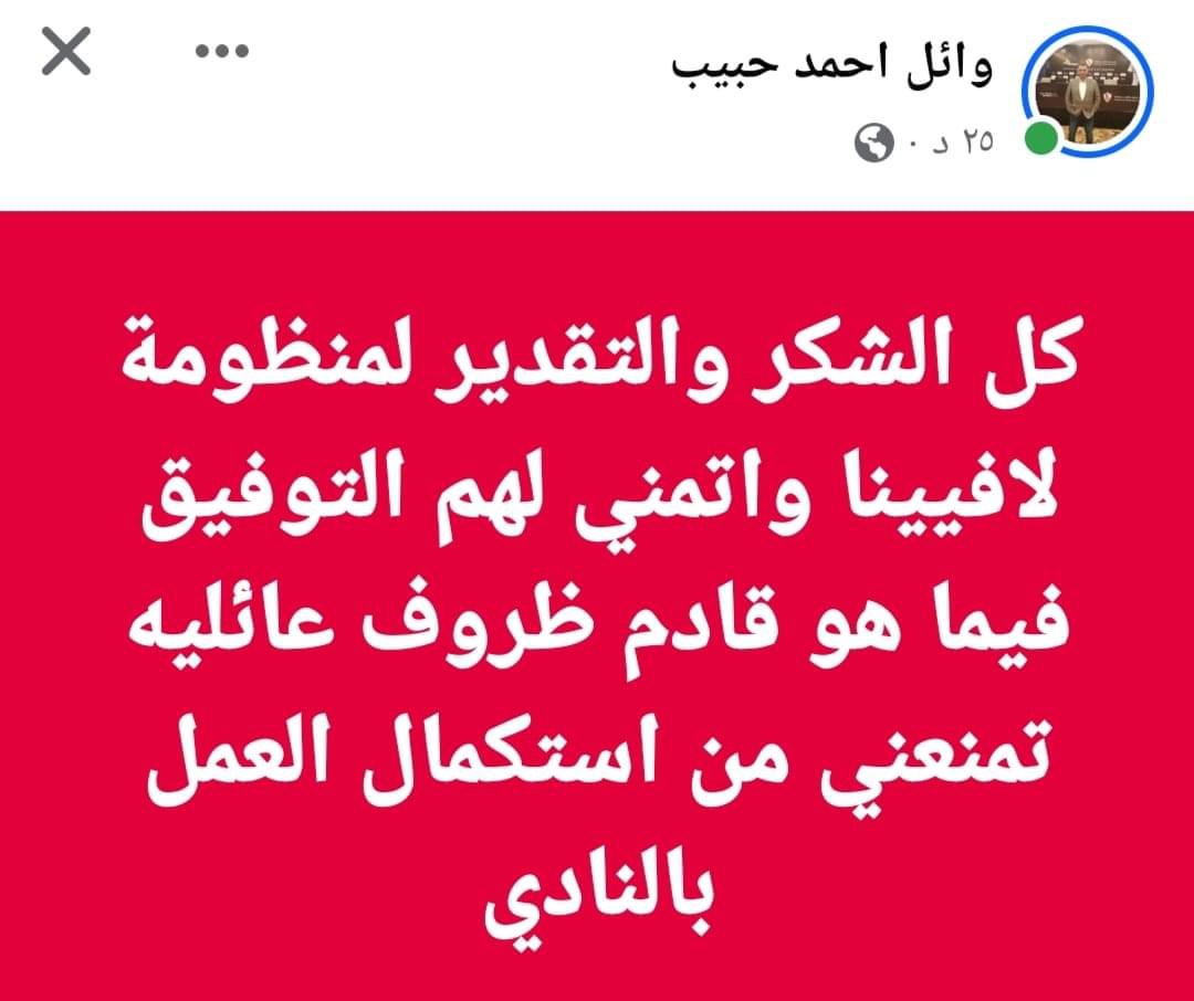 وائل حبيب يعتذر عن عدم استكمال عمله مديرا للكرة بنادي لافيينا