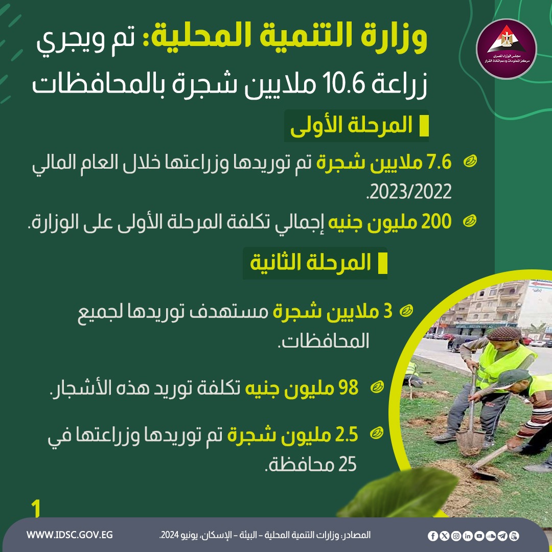 التنمية المحلية تكشف تفاصيل زراعة 10.6 مليون شجرة بالمحافظات (إنفوجراف)
