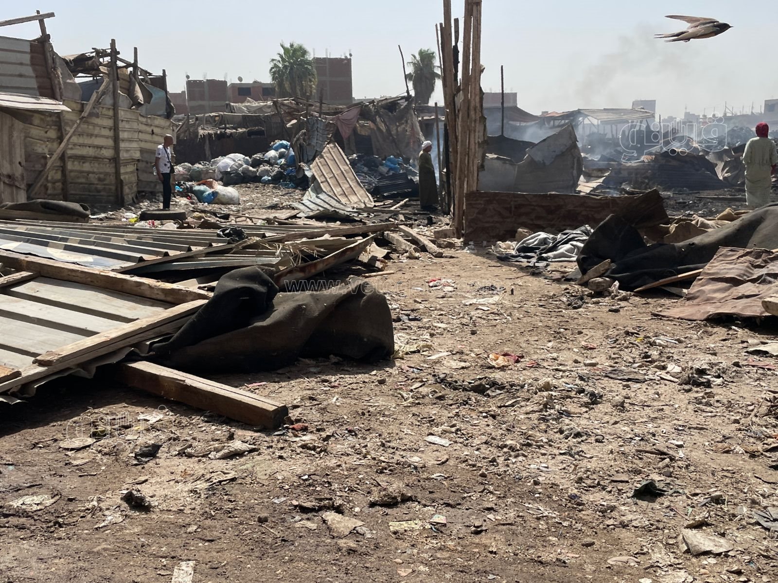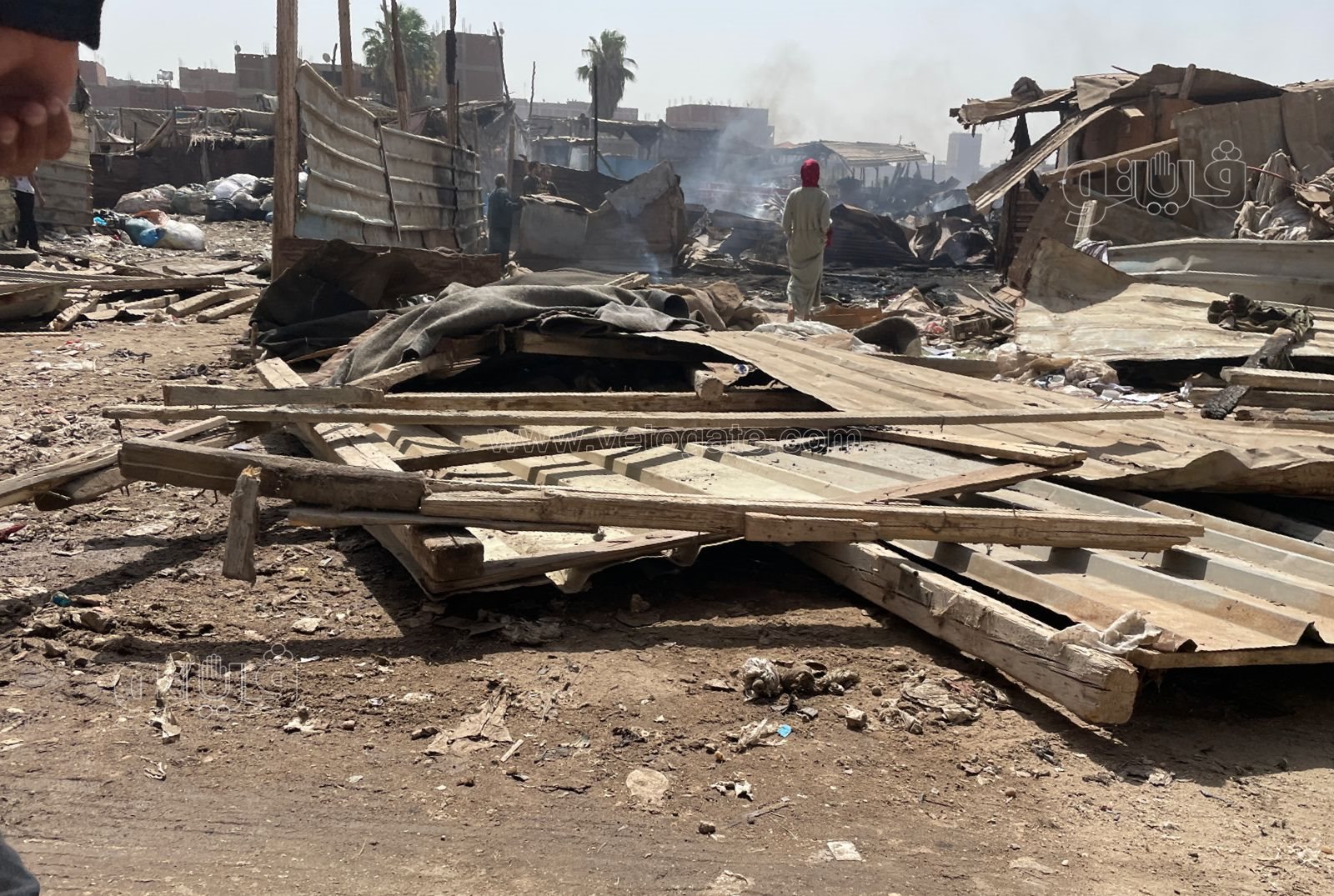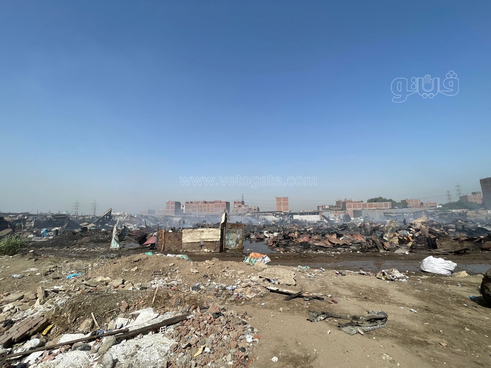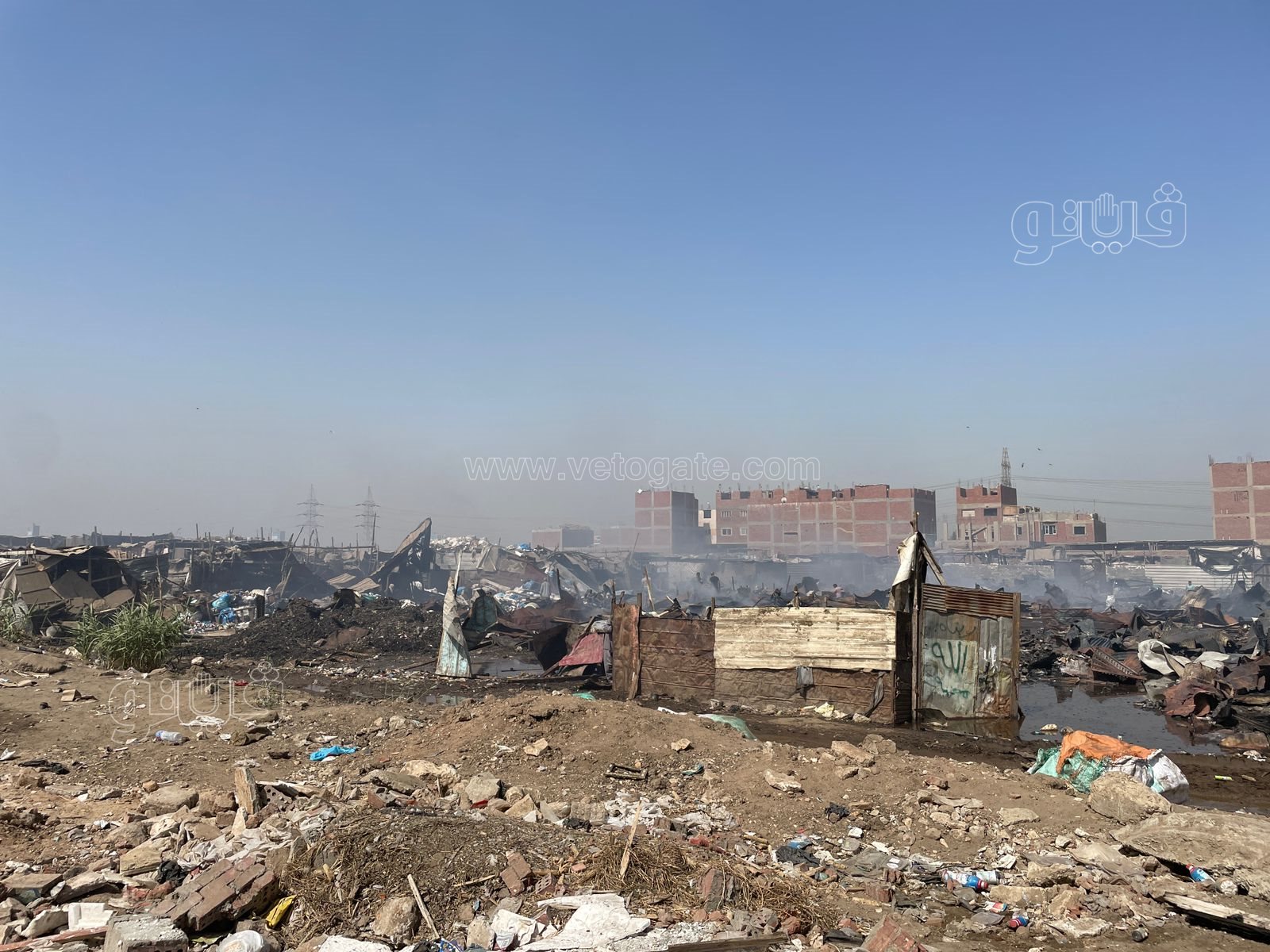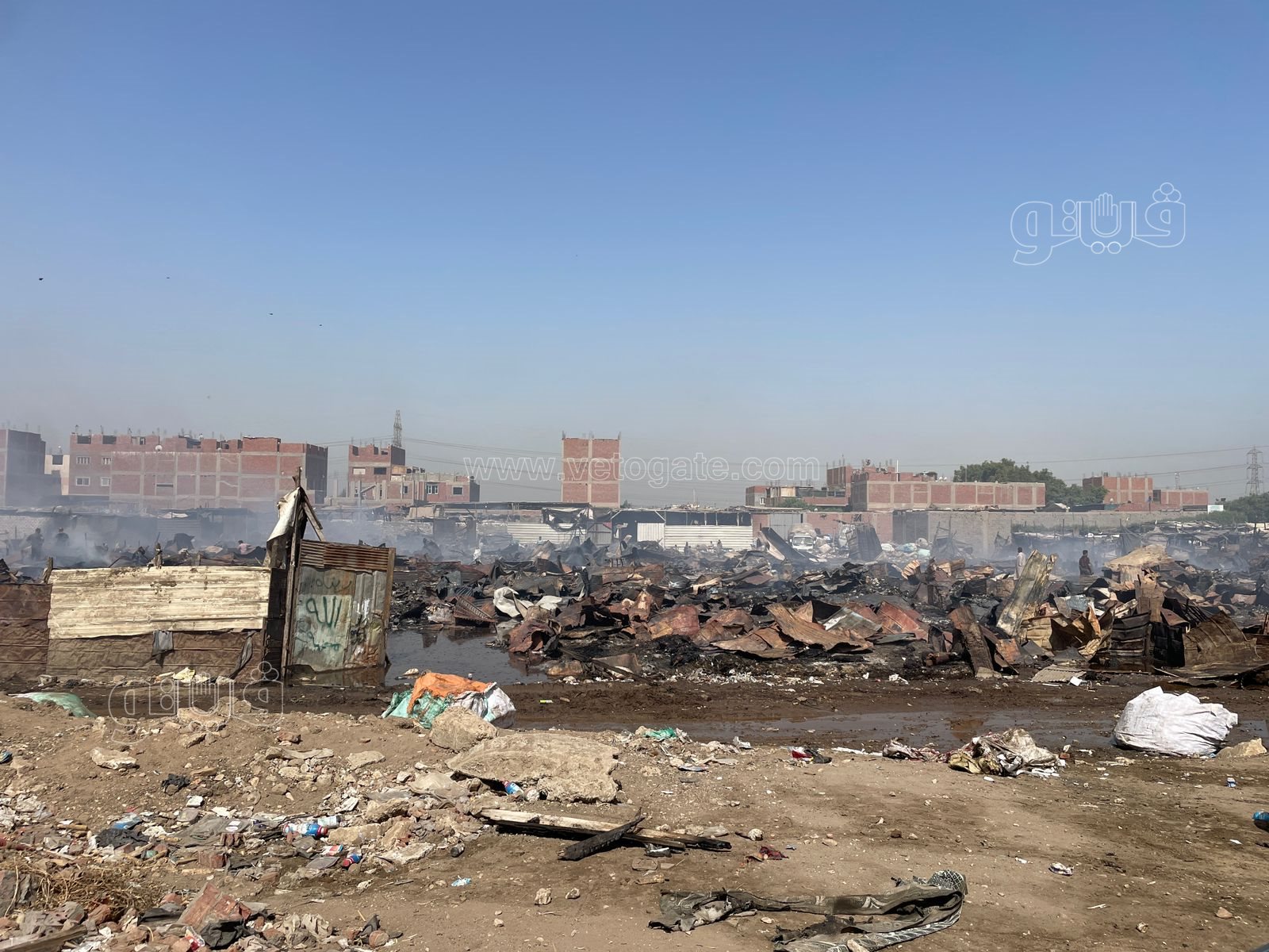 رصدت عدسة “فيتو” آثار حريق هائل اندلع في مجموعة عشش بمنطقة الزرايب بالبراجيل.
