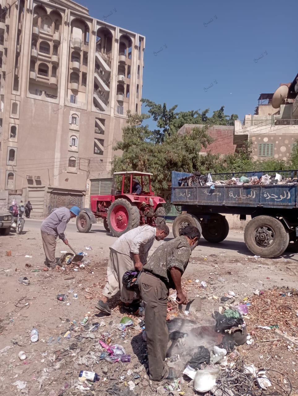 رفع نقاط القمامة ورى الأشجار بالعصلوجى