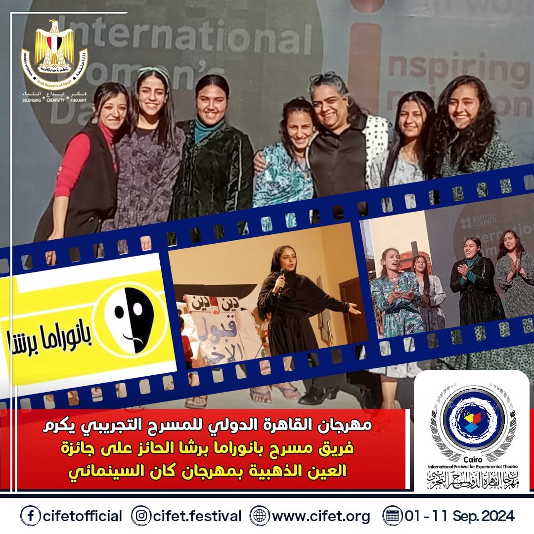 يكرم مهرجان القاهرة الدولي للمسرح التجريبي خلال دورته الـ 31 برئاسة الدكتور سامح مهران فريق بانوراما برشا المسرحي الذي قدم الفيلم التسجيلي "رفعت عيني للسما" الحائز علي جائزة العين الذهبية في الدورة الماضية من مهرجان كان السينمائي الدولي.