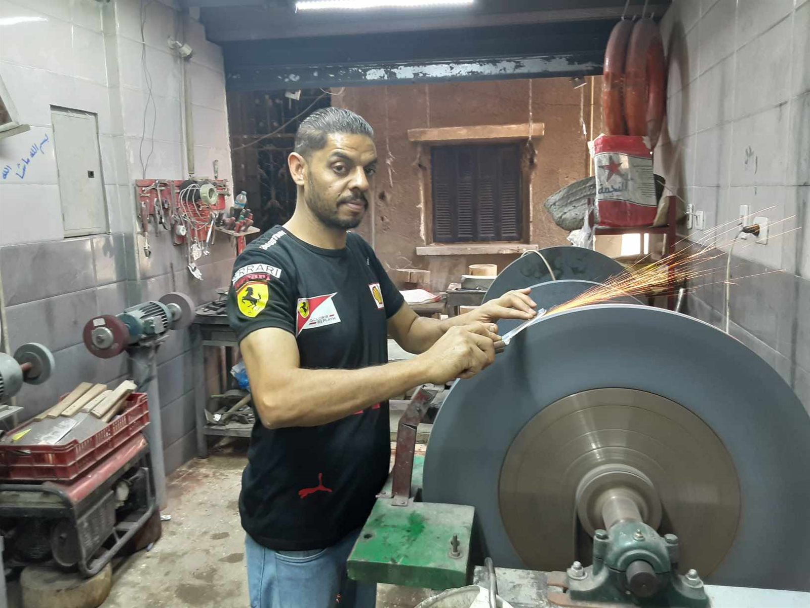 وقدم «محمد» نصيحة إلى ربات البيوت وكل من يستخدم الألات الحادة، وهي أنه عند استخدام السكين لتقطيع الخضراوات أو اللحوم أو أي شيء بصفة عامة؛ استخدام ألواح خشبية أو بلاستيك «بلانشات» لأنه يطيل من عمر السكينة، بخلاف التقطيع على الرخام أو «البلانشات» الزجاج الذي يؤثر على شفرة السكين.