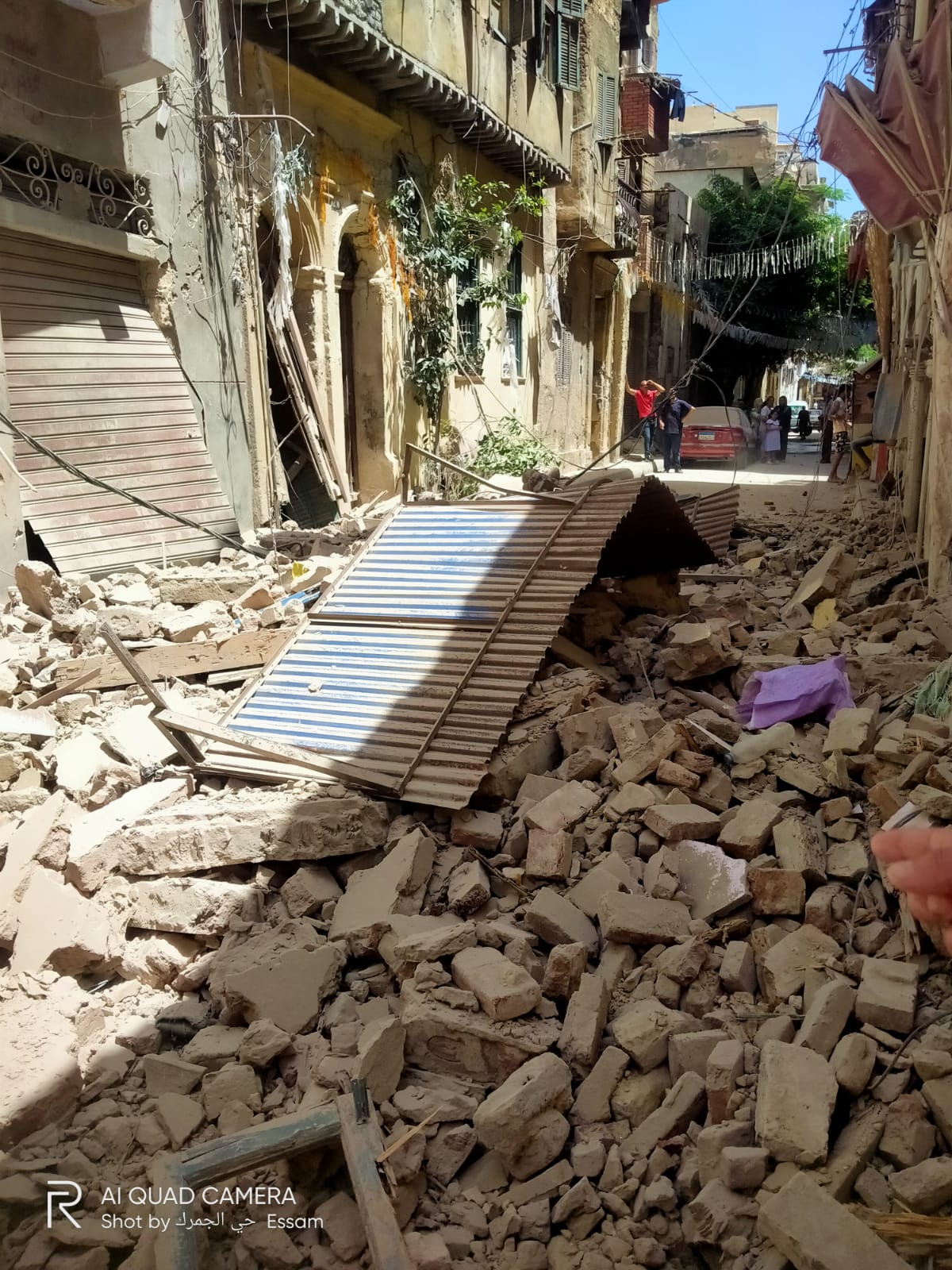 انهيار جزئي لعقارين بحي الجمرك في الإسكندرية (صور)