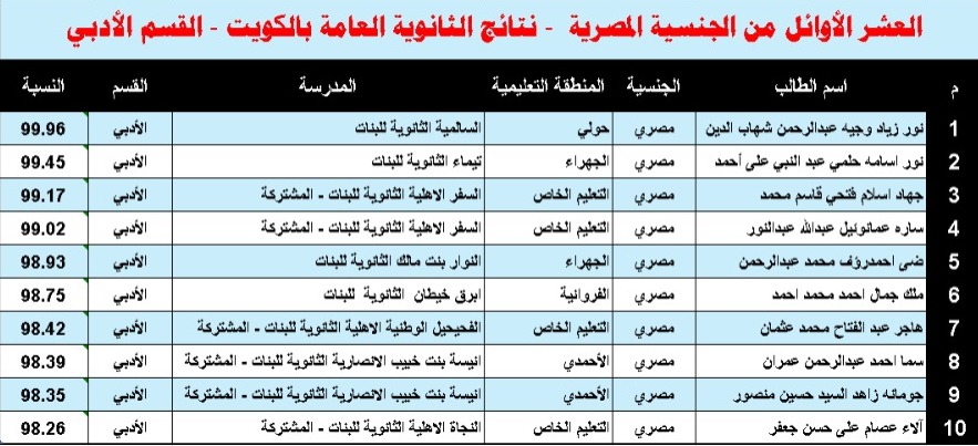 وأعربت وزيرة الهجرة، عن فخر الدولة المصرية واعتزازها بشبابها ونجاحهم، مؤكدة أن الطلاب المصريين واصلوا تفوقهم المعتاد بتحقيق إنجاز تعليمي كبير هذا العام بعد حصولهم على المراكز الأولى في شهادة الثانوية العامة بالكويت سواء في القسم العلمي بنين وبنات وكذلك القسم الأدبي والقسم الديني.