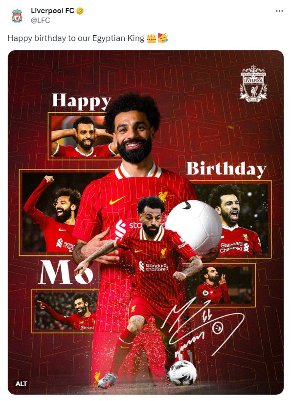 واحتفل نادي ليفربول الإنجليزي عبر حسابه الرسمي بعيد ميلاد نجمه المصري الدولي محمد صلاح.