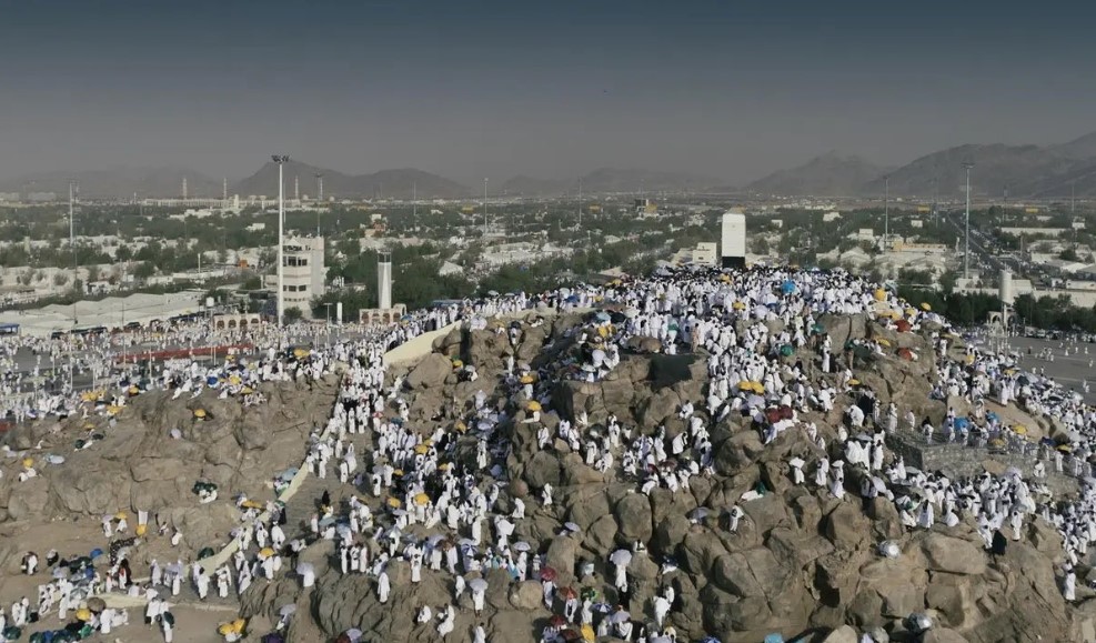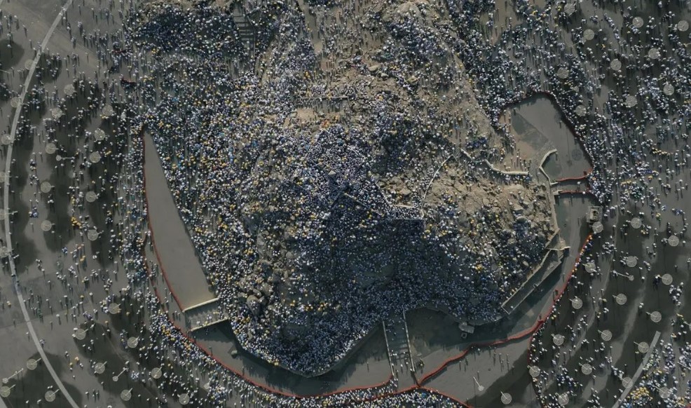 نشرت وسائل الإعلام السعودية، اليوم السبت، لقطات جوية توثق وقوف حجاج بيت الله الحرام علي جبل الرحمة.