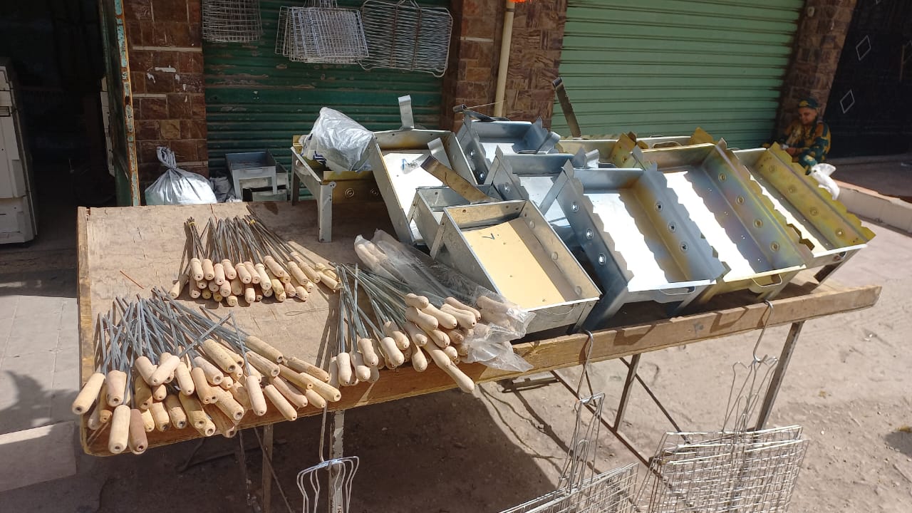 وأوضح سعد أن هناك مستلزمات أخرى لزوم حفل الشواء كالرياشة التي “يُهوى” بها على اللحم لتسويته بصورة سليمة تكسبه لذة في الطعم، ويبدأ سعرها من ٢٥ جنيها وحتى ١٠٠ جنيه حسب الخامة والحجم، بالإضافة إلى شبكة الشواء التي يوضع عليها اللحم، ومنها التي تغلق "مجوز"، ومنها “الفردي”، وتبدأ أسعارها من ٣٠ جنيها، وحتى ٢٠٠ جنيه حسب الحجم والخامة، بالإضافة إلى الأسياخ التي تعلق فيها اللحوم وسعر السيخ يبدأ من ٢٠ جنيها، وكذلك بطل عملية الشواء وهو الفحم، ومتوافر بعدة أنواع، ولكن أهمها الجزوين، ويتراوح سعره من ٣٠ إلى ٥٠ جنيها للكيلو، ويفضل الحجم الوسط لسرعة اشتعال النار فيه واستمرارية اشتعالها، لافتا إلى أنه يقدم فتات الفحم لمن يطلبها دون مقابل.