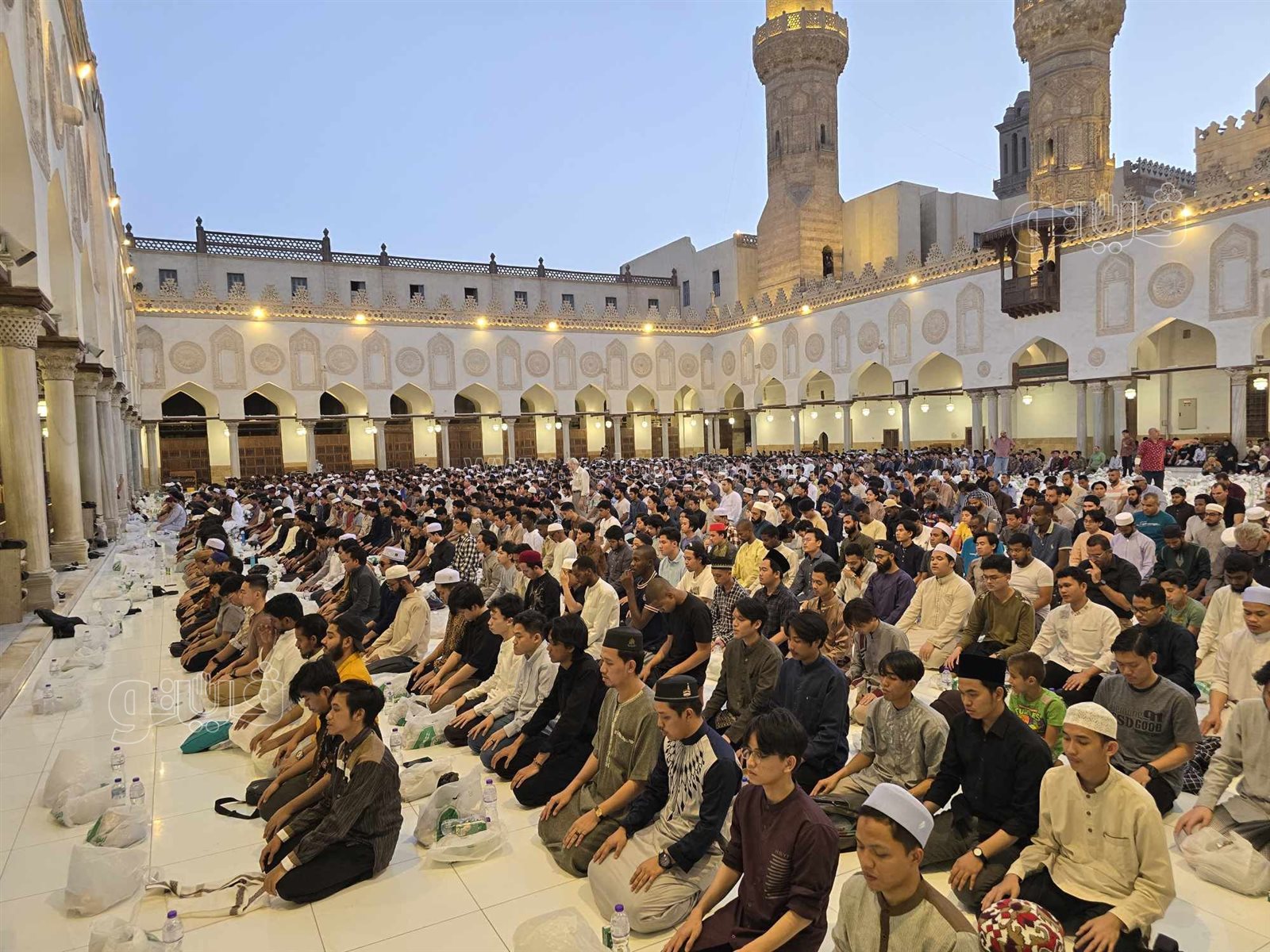 ونظم الجامع الأزهر الشريف، مائدة تتكون 5000 وجبة إفطار للطلاب الوافدين، وذلك وفقًا لتوجيهات فضيلة الإمام الأكبر الدكتور أحمد الطيب، شيخ الأزهر الشريف، وإشراف الدكتور محمد الضويني، وكيل الأزهر.