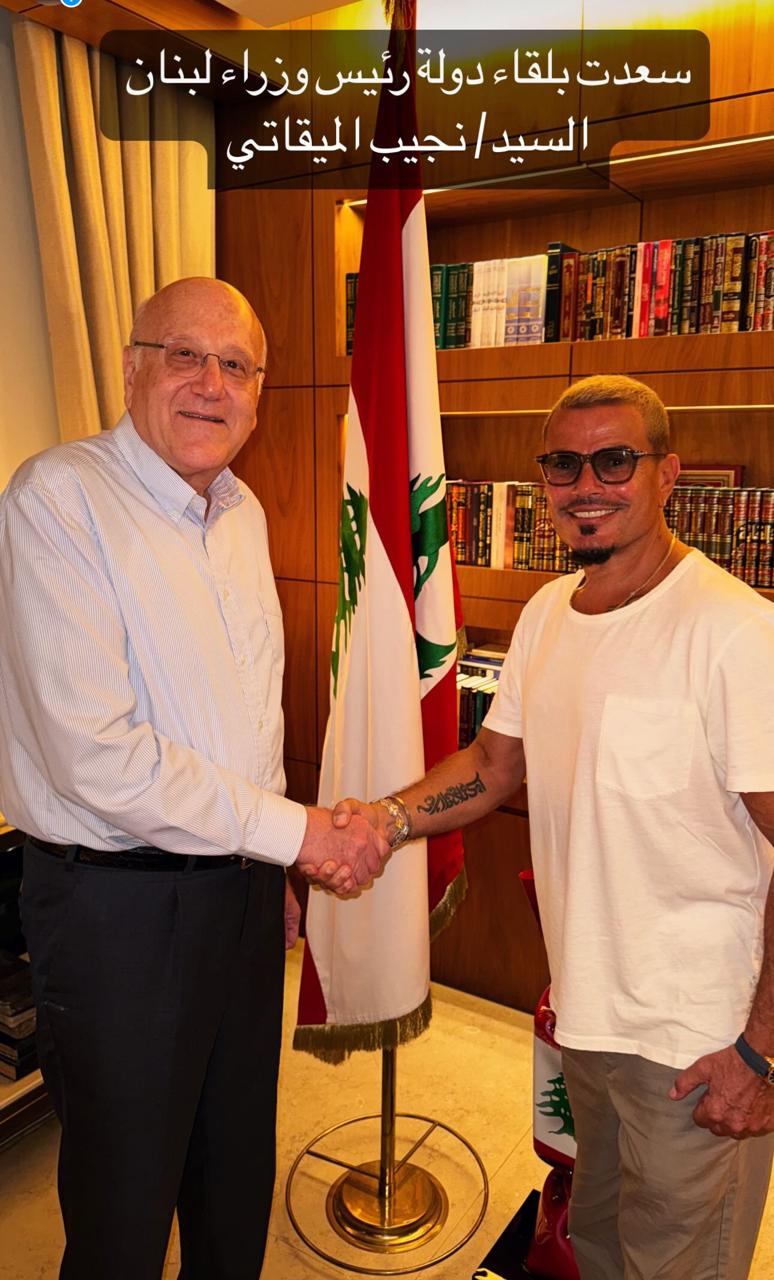 رئيس الوزراء اللبناني يستقبل عمرو دياب قبل حفله في بيروت