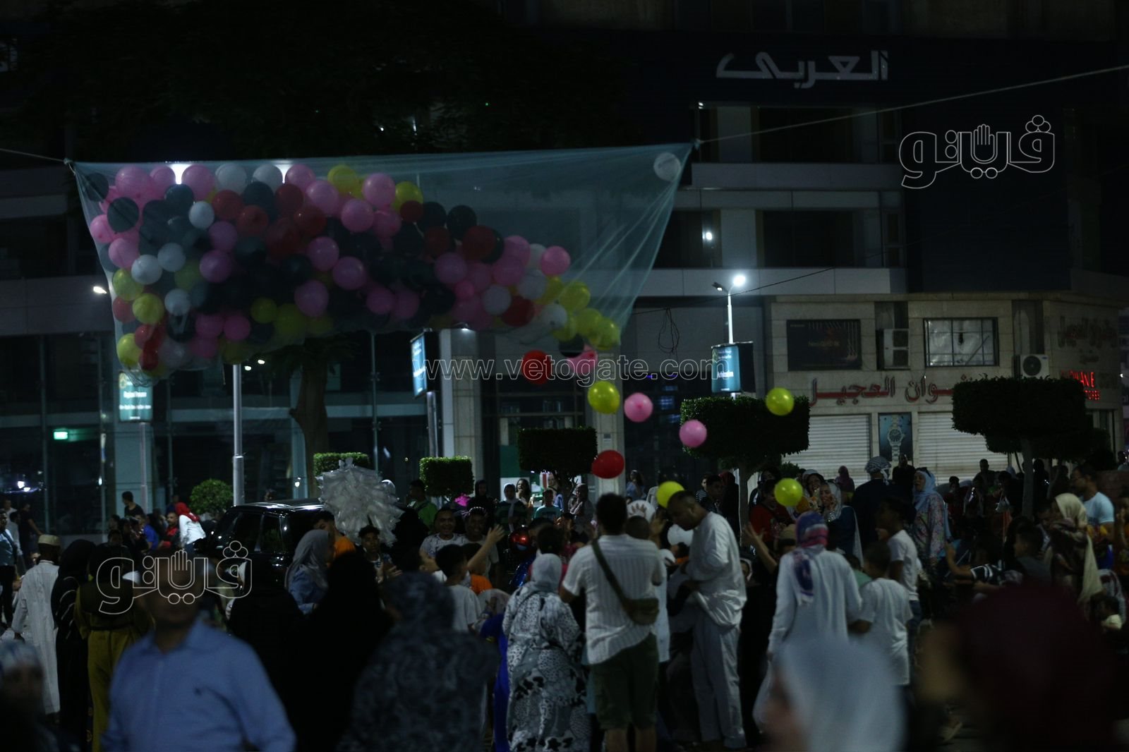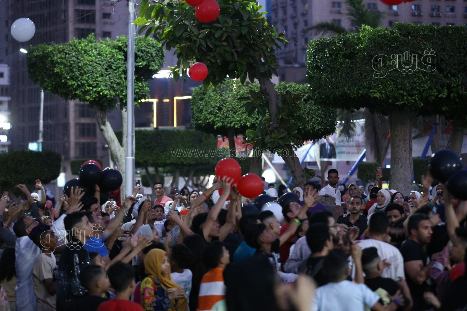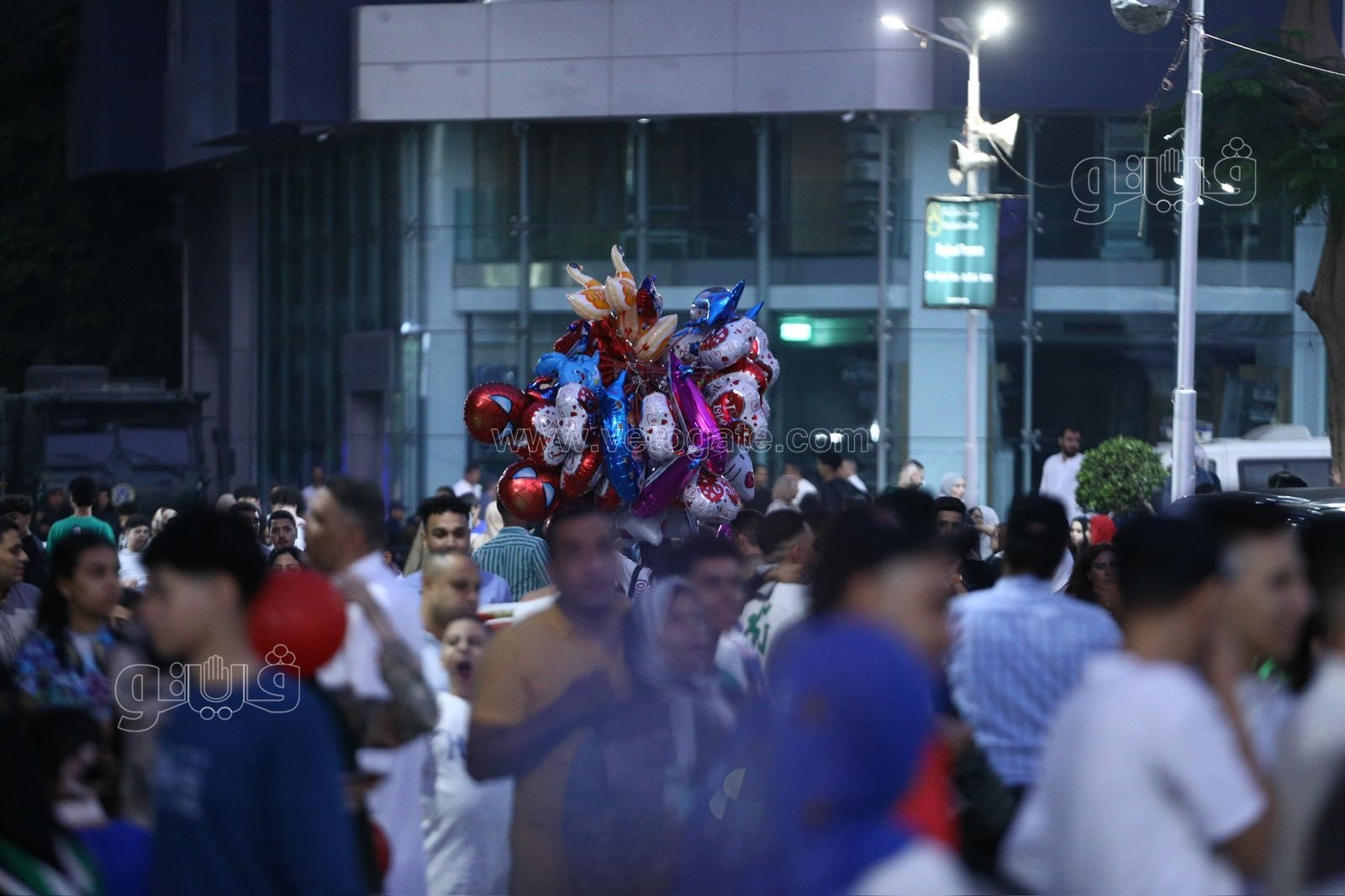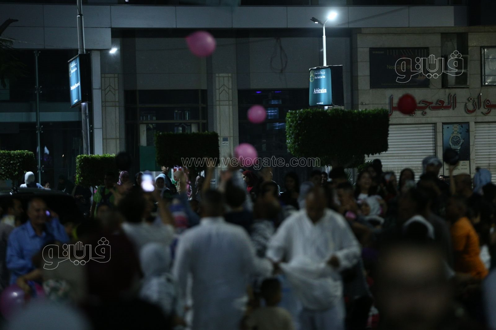 شلالات البلالين تسقط على المصلين احتفالًا بعيد الأضحى بساحة مصطفى محمود (فيديو)